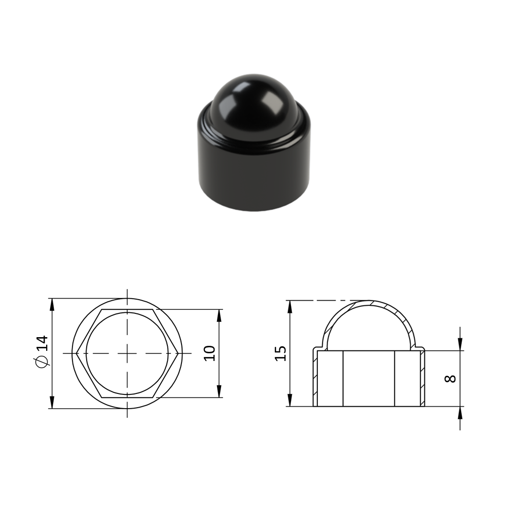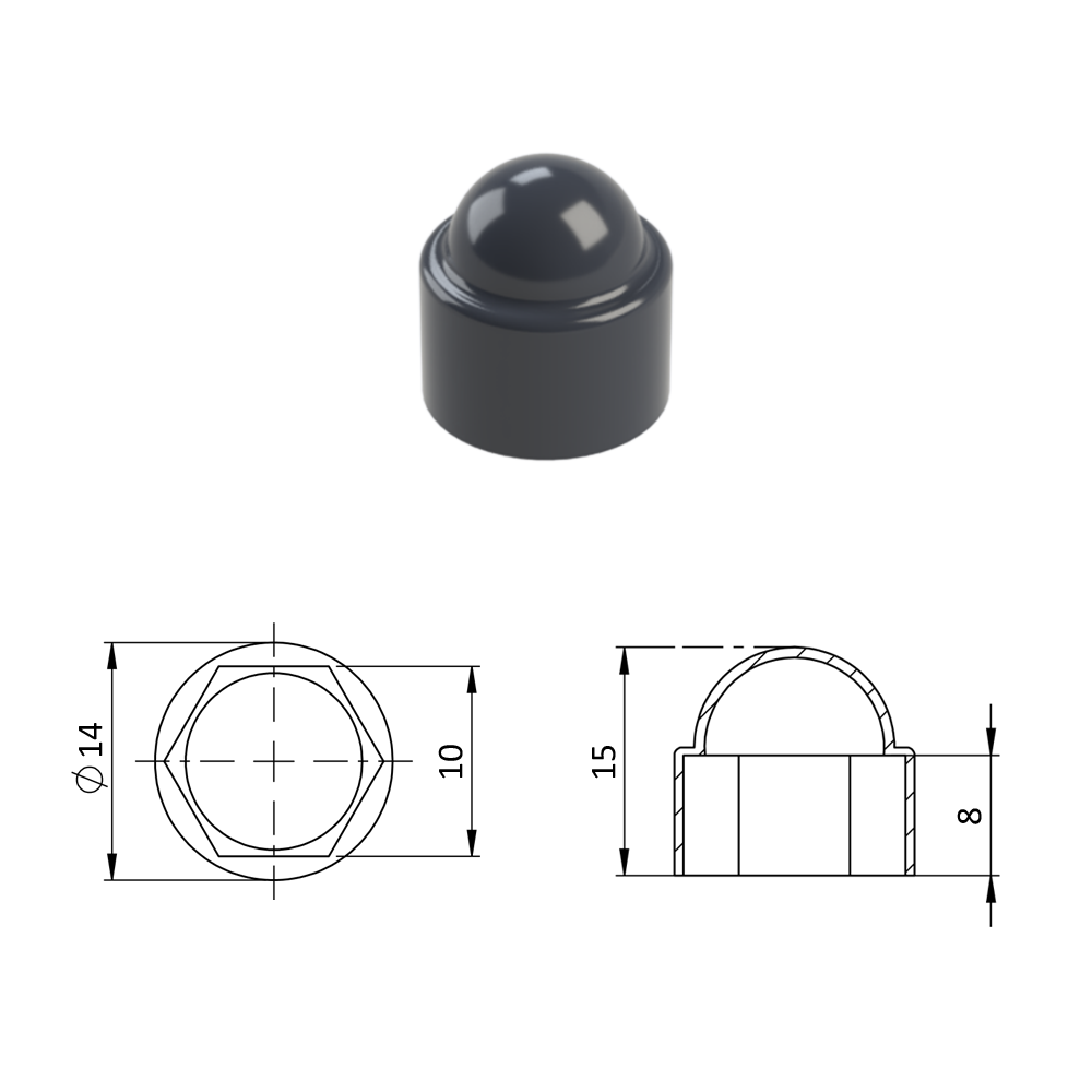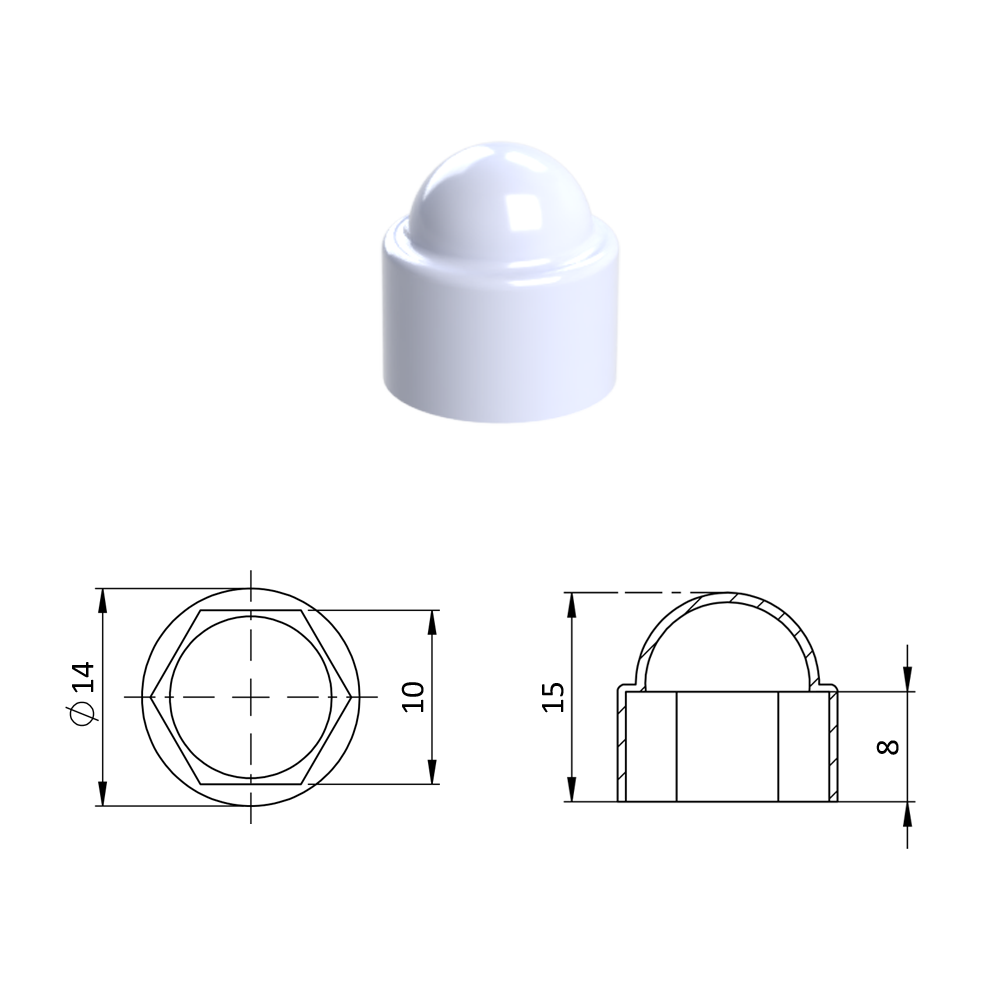 Krytka plastová na matice a šrouby M6...