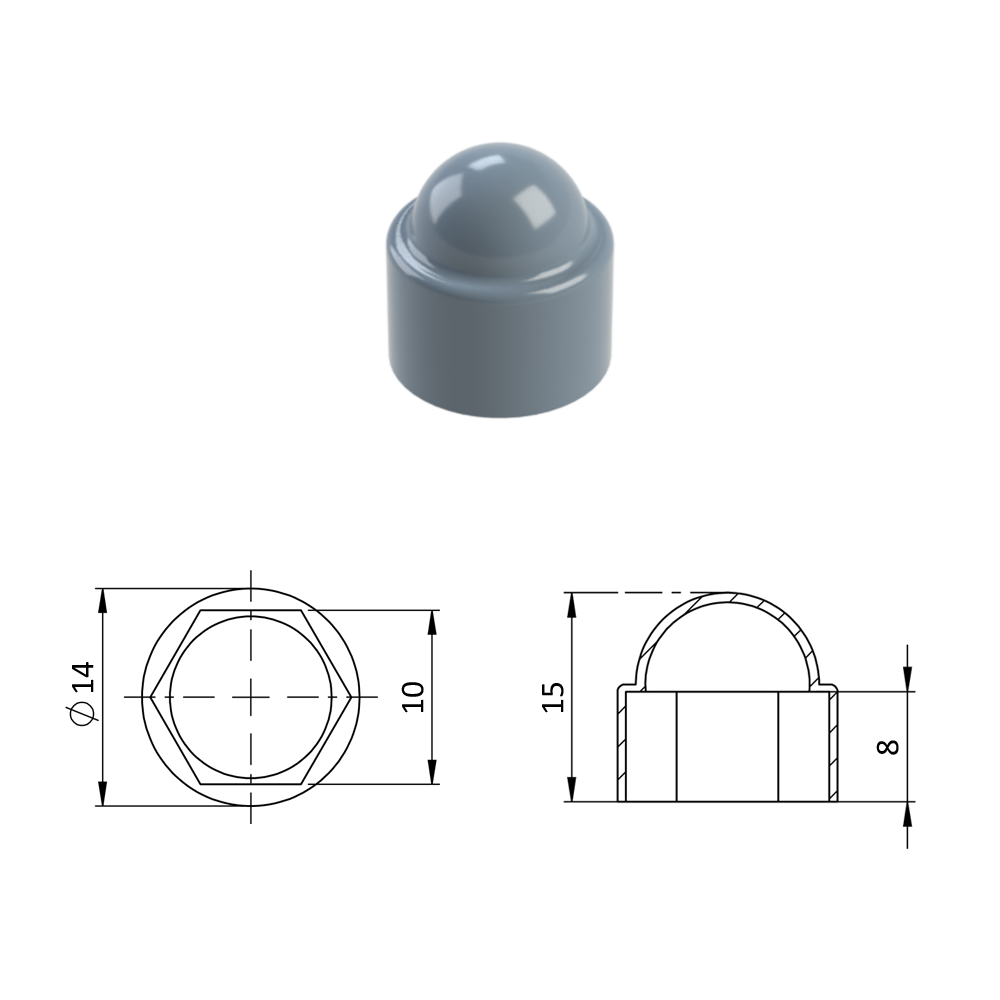 Krytka plastová na matice a šrouby M8...