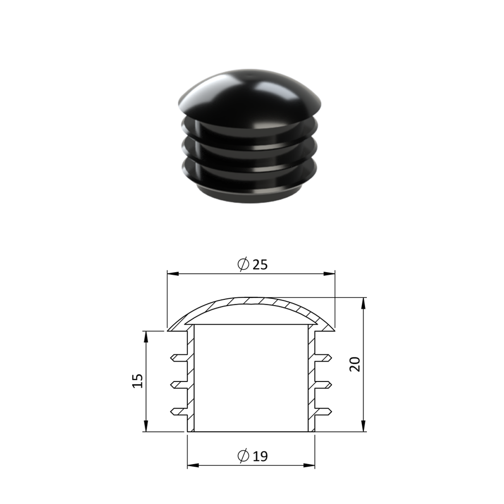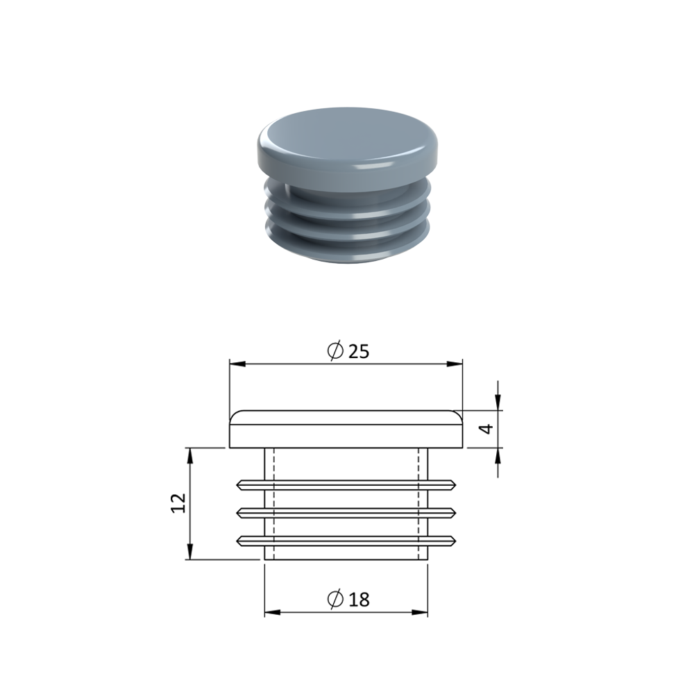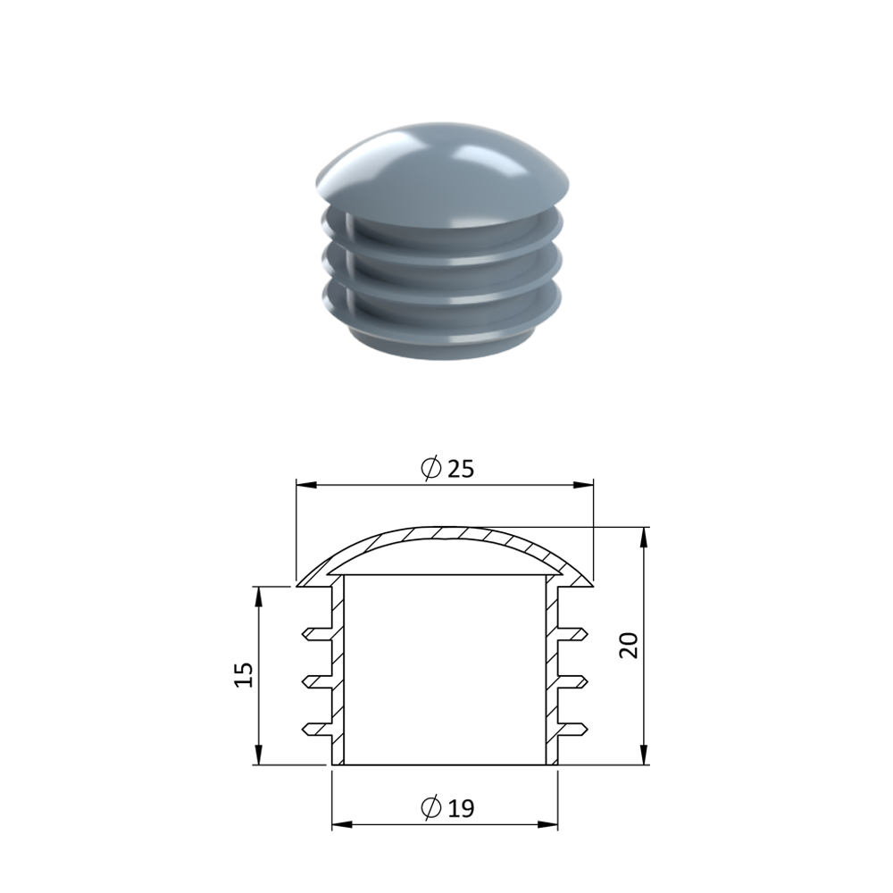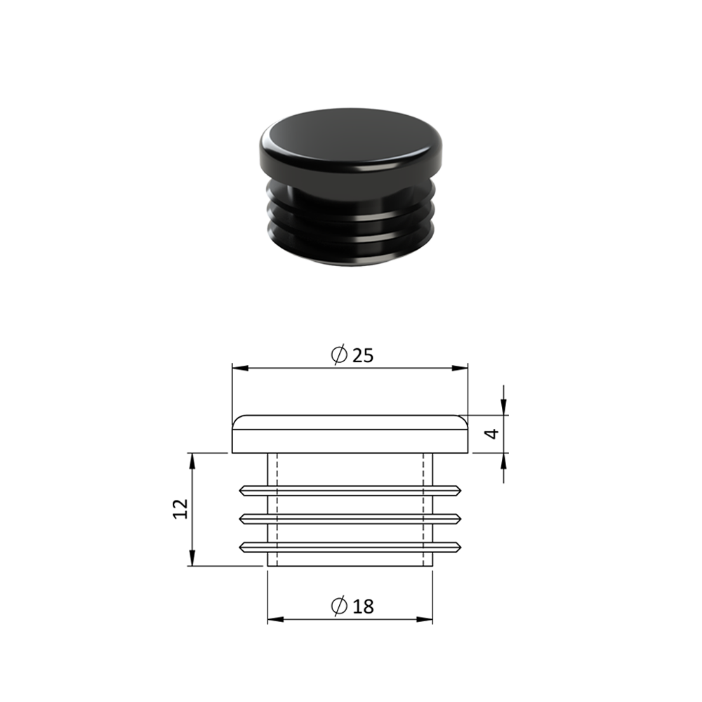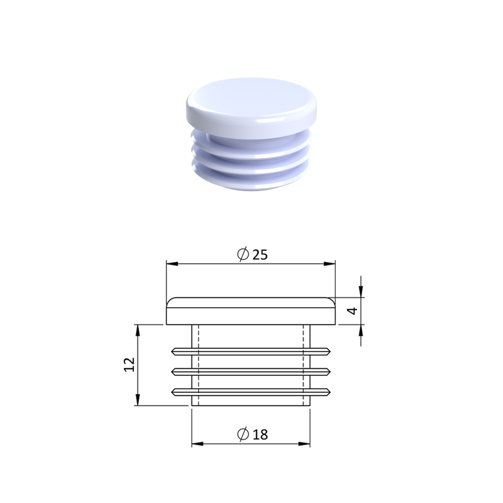 Vnitřní krytka kulatá ø 25 mm, plasto...