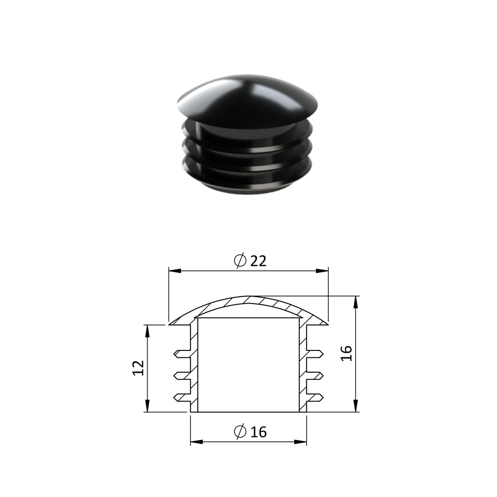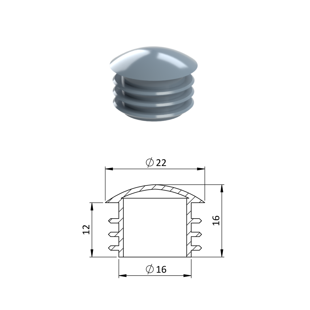 Vnitřní krytka kulatá ø 22 mm, plasto...