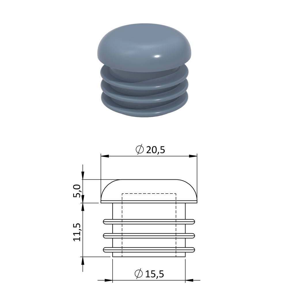 Vnitřní krytka kulatá ø 20,5 mm, plas...