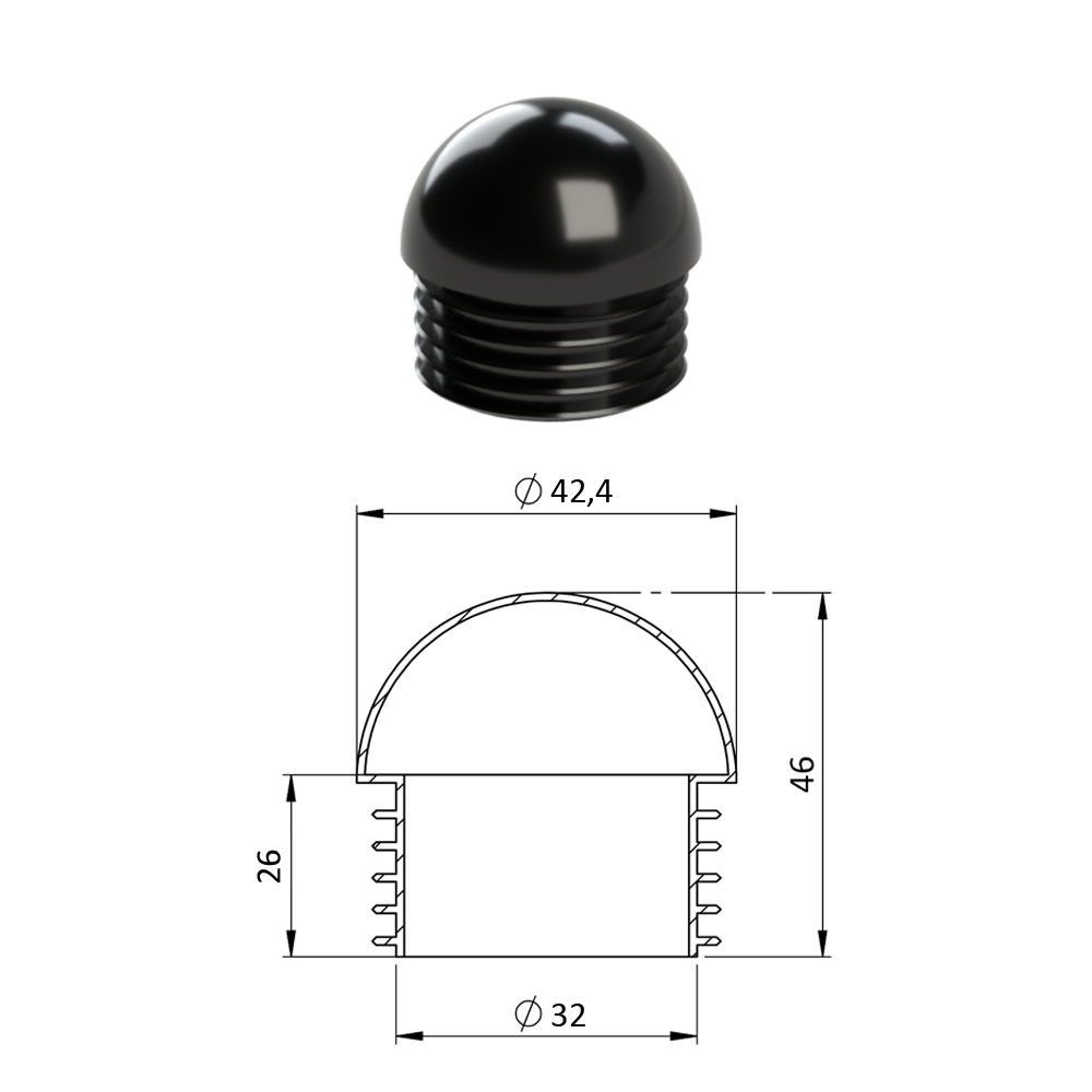 Vnitřní krytka polokulatá ø 42,4 mm, ...