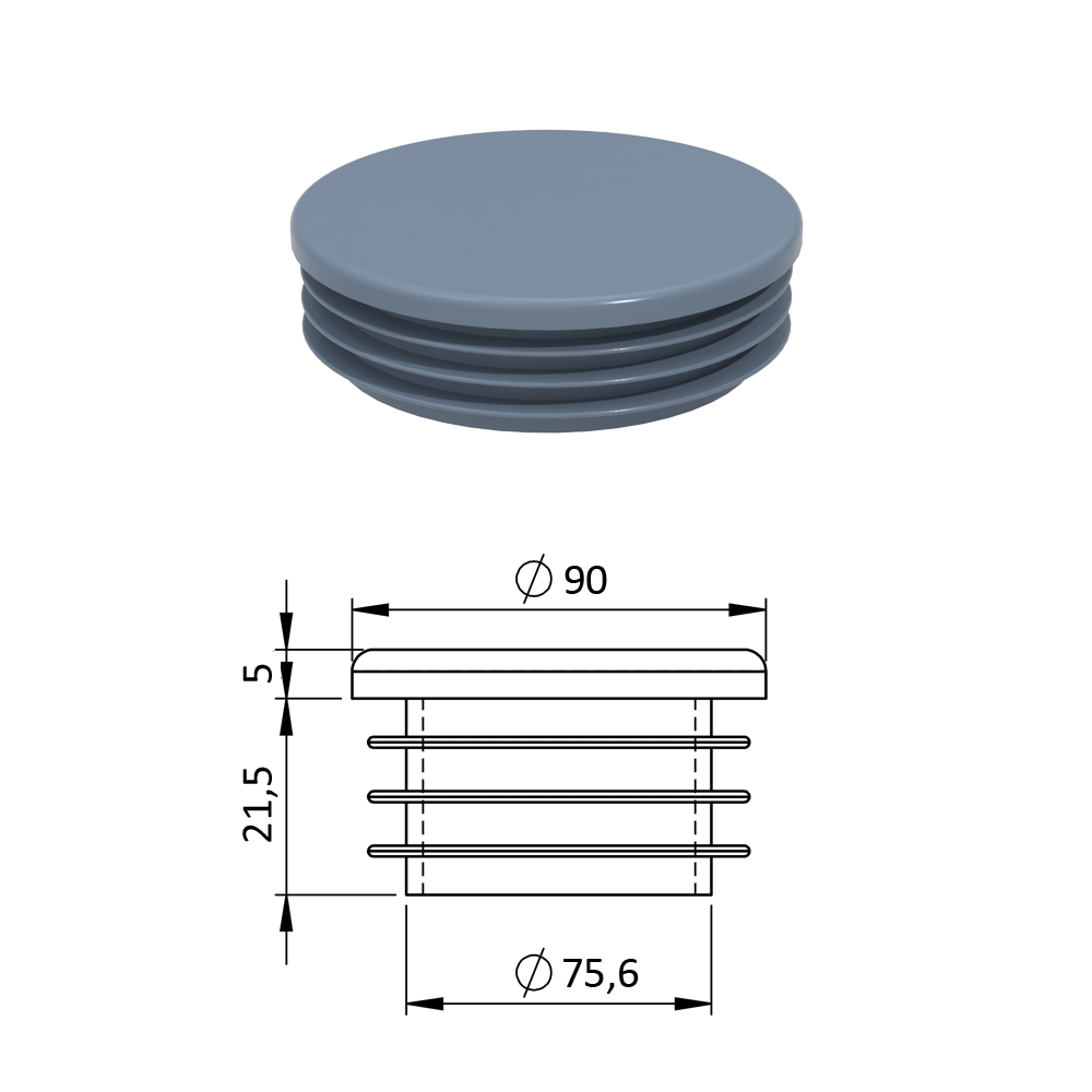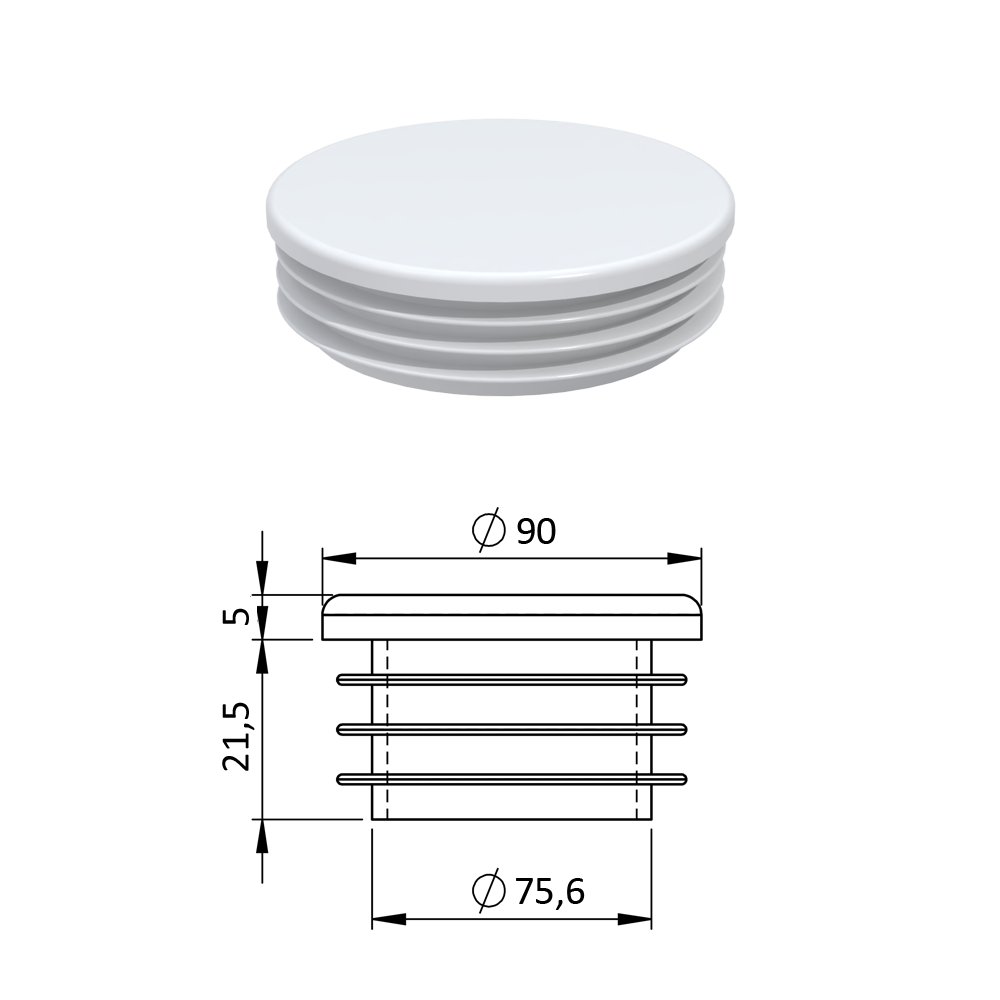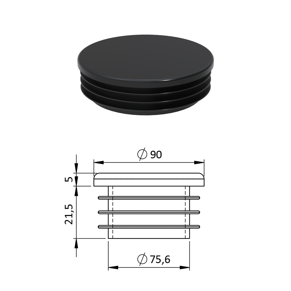 Vnitřní krytka kulatá ø 90 mm, plasto...