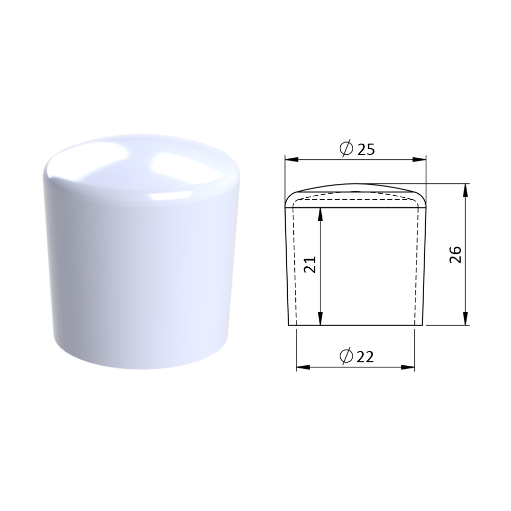 Vnější krytka PVC ø 25 x 26 mm, otvor...