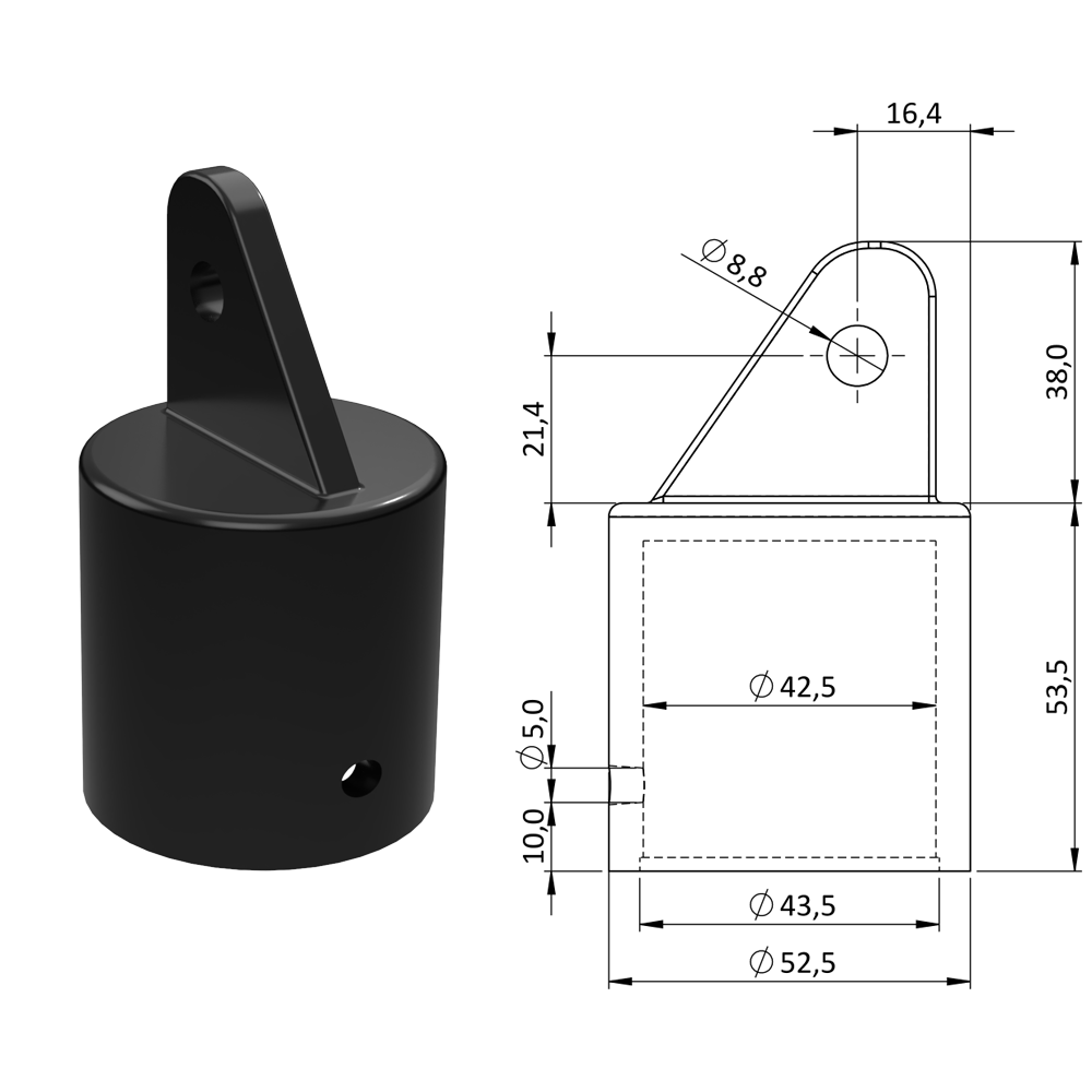 Plastová krytka, ø 52,5 x 91,5 mm, tv...