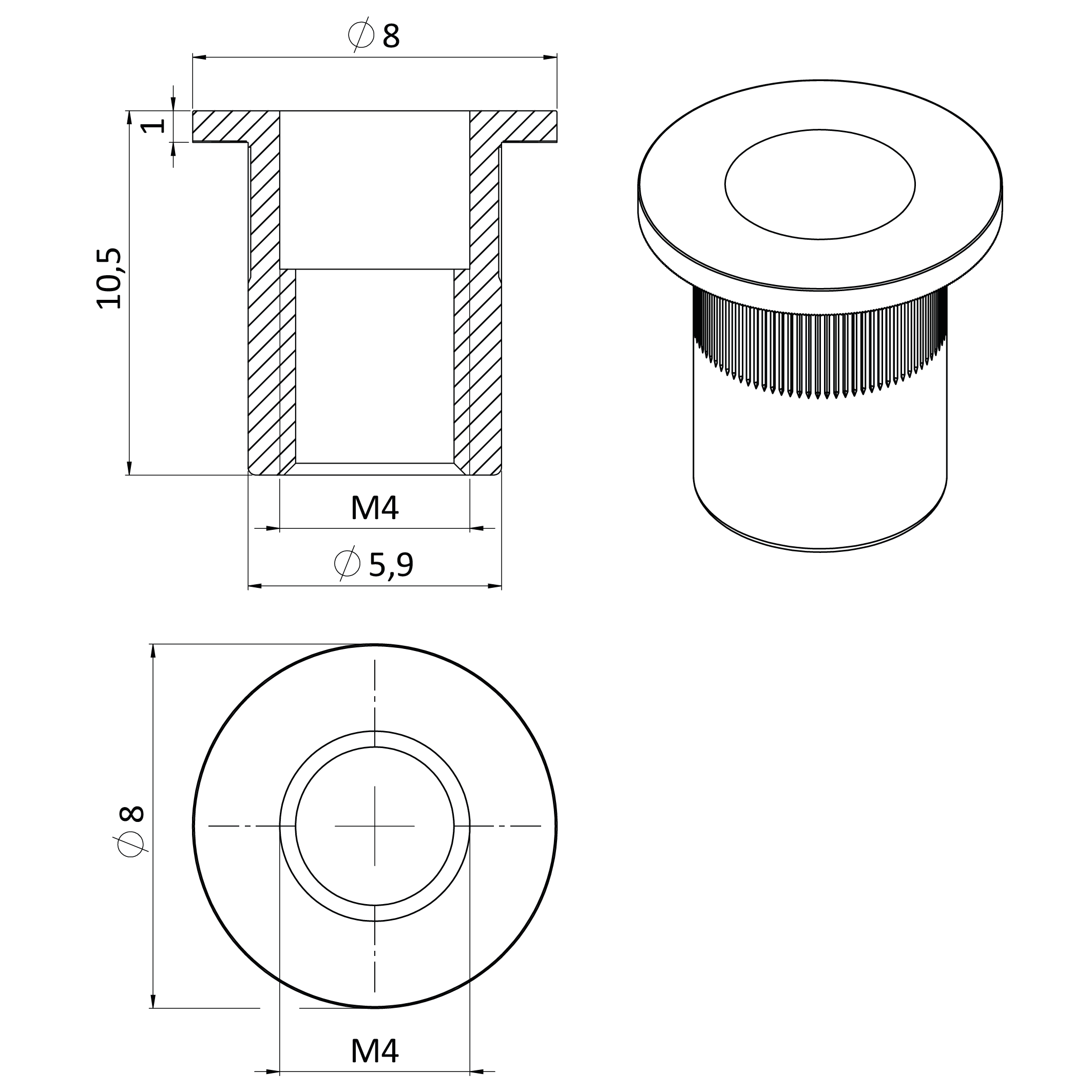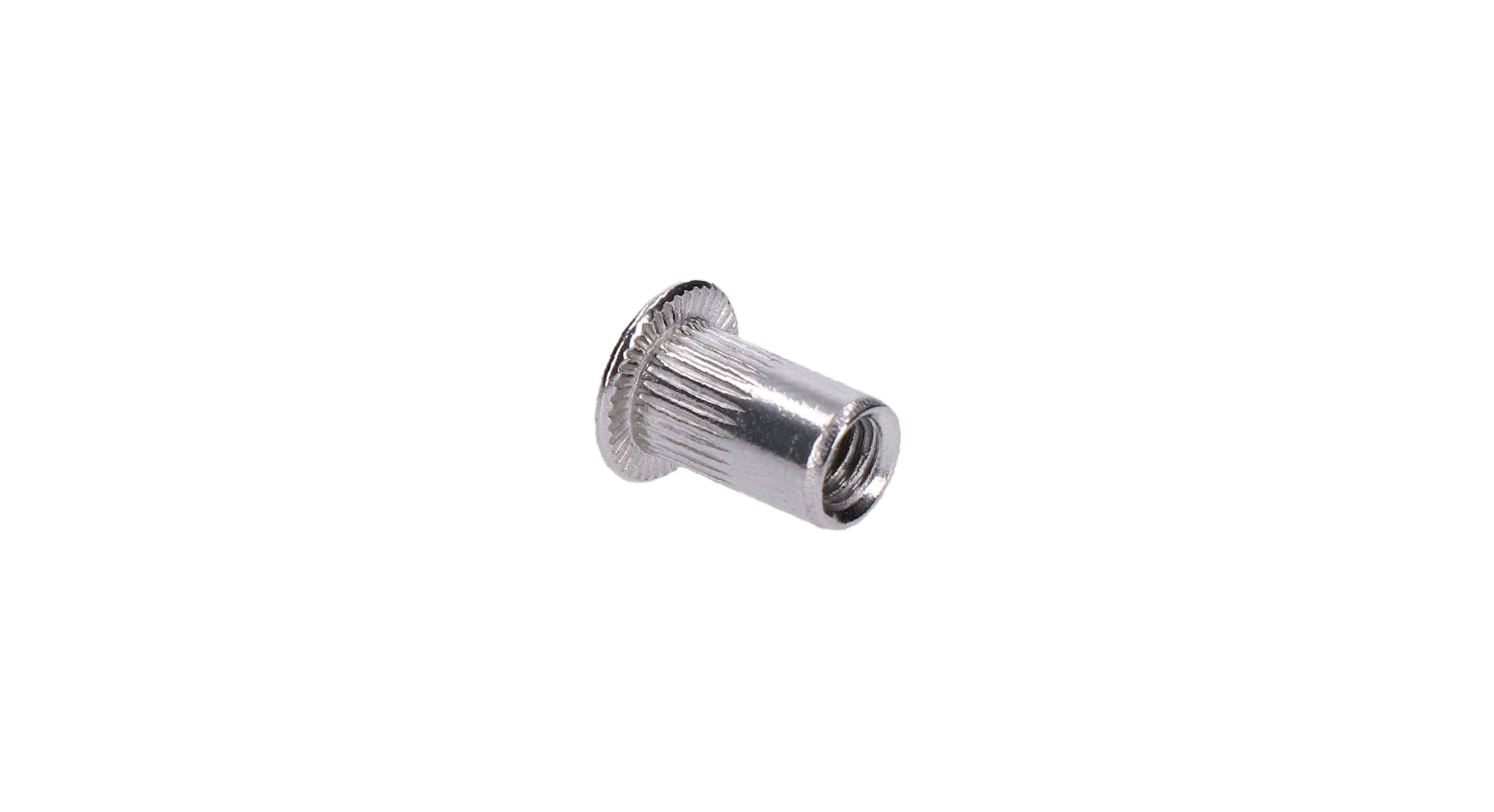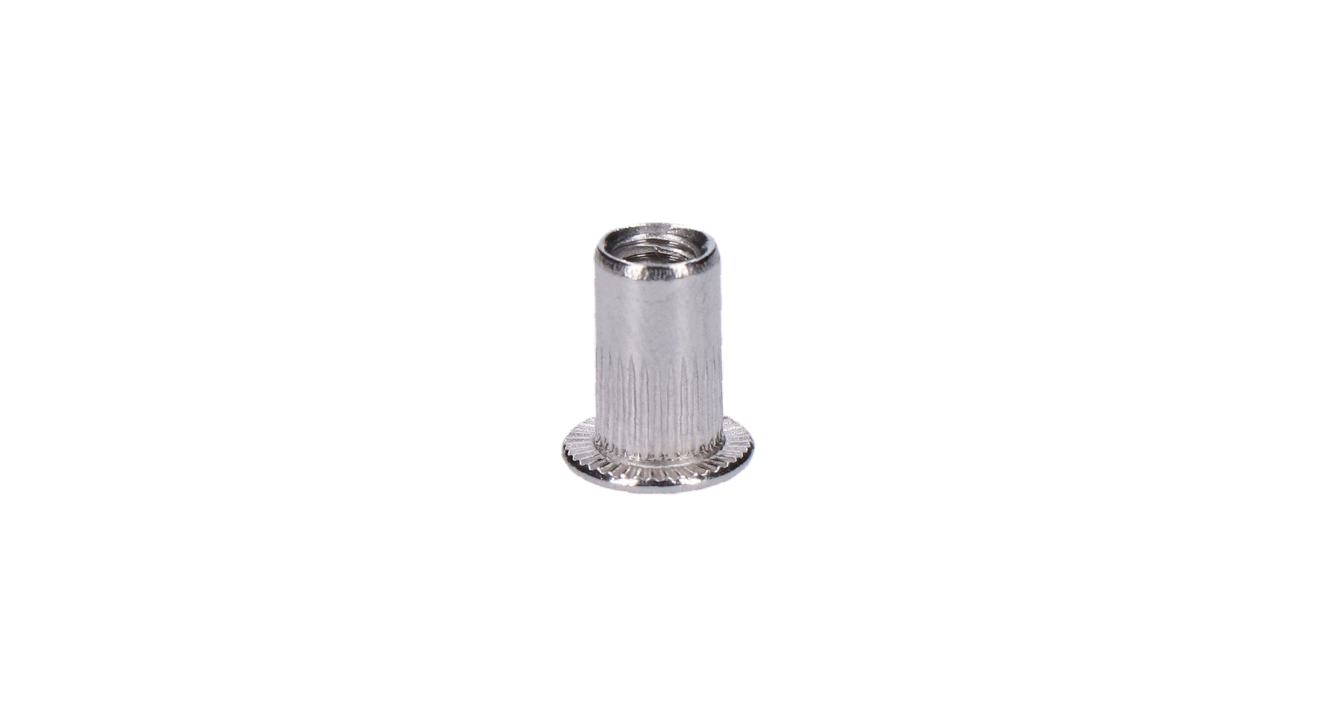 AISI304 nýtovací matice M4, plochá, rýhovaný dřík, L-18mm