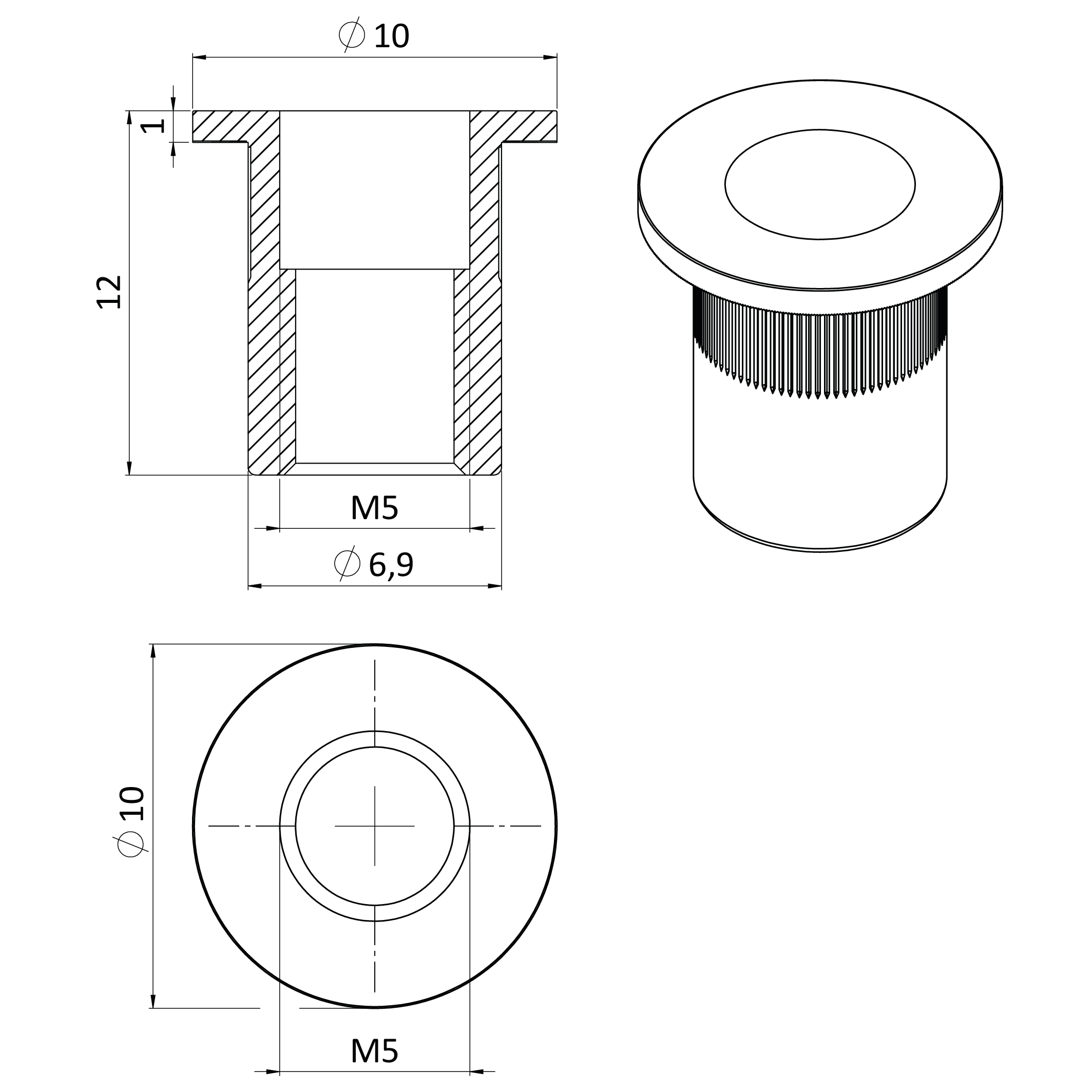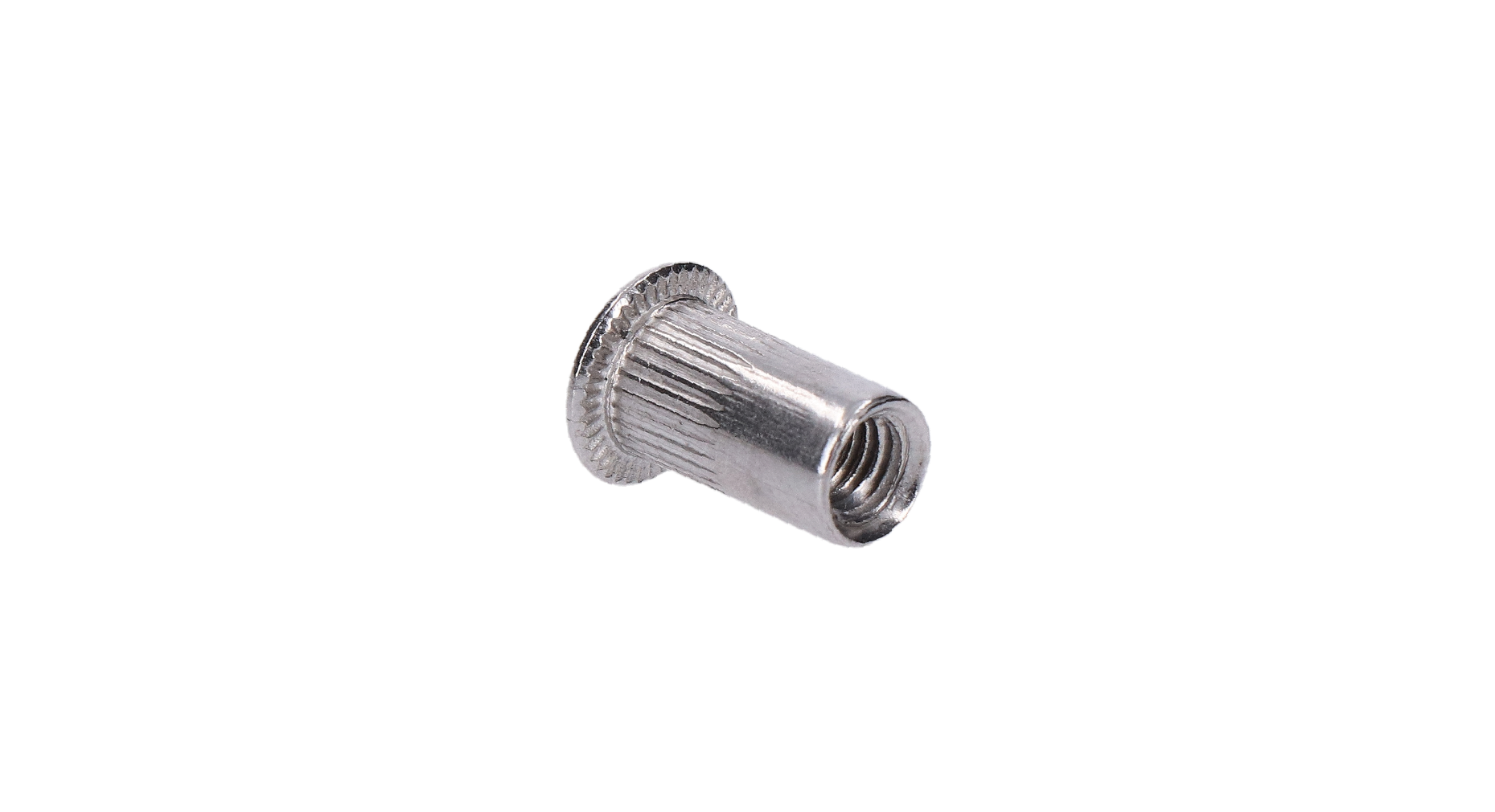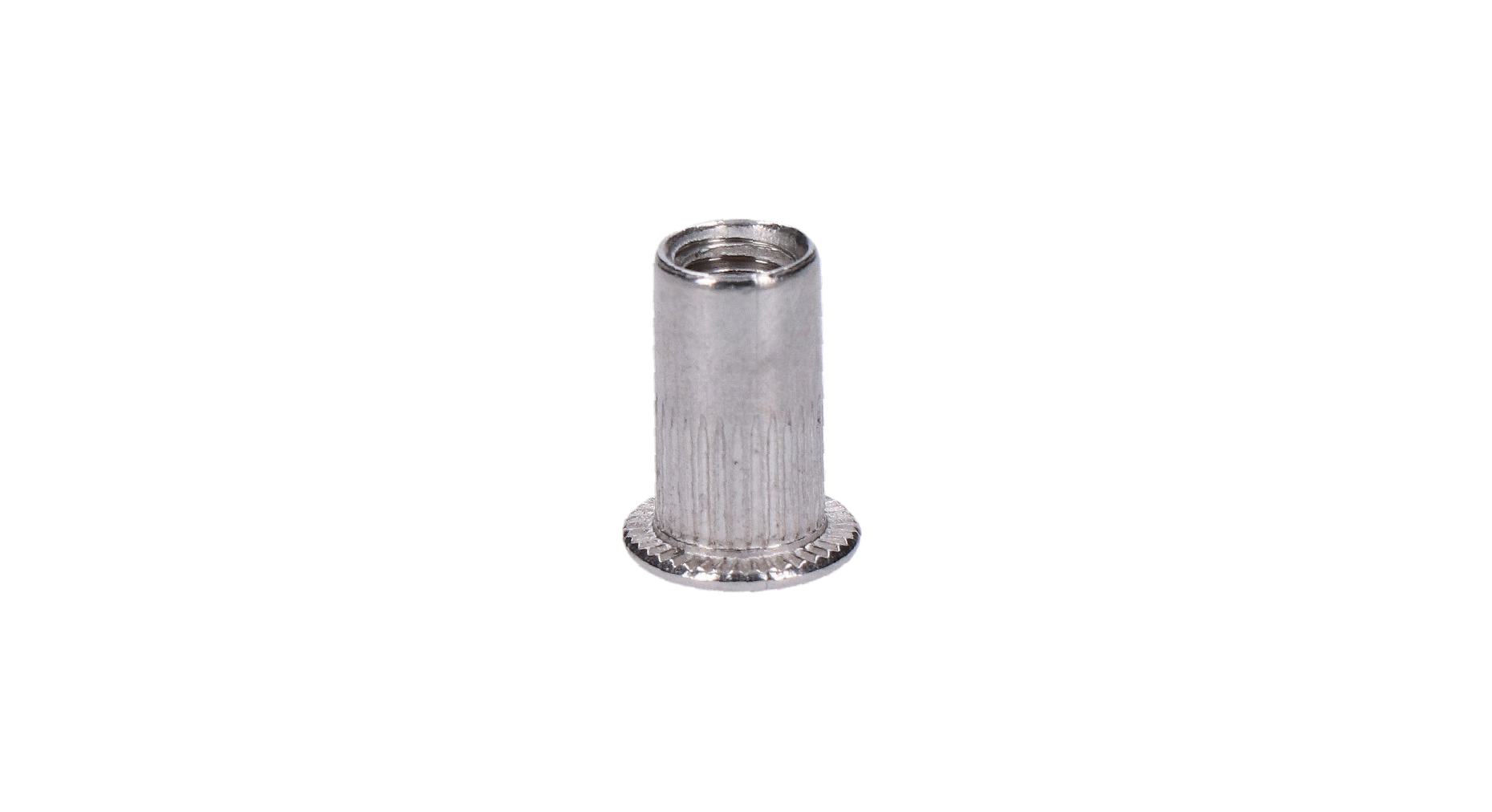 AISI304 nýtovací matice M5, plochá, rýhovaný dřík, L-19mm
