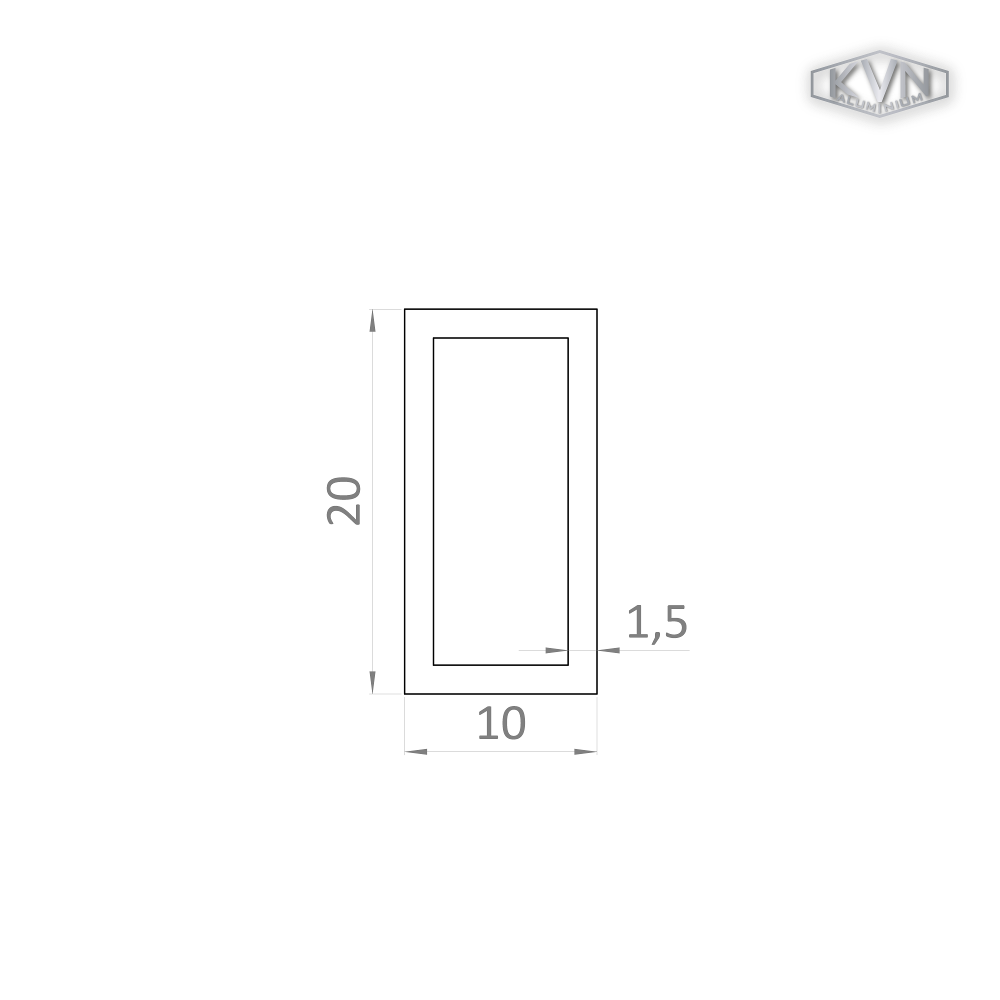 Hliníkový jekl 20x10x1,5 mm, délka 6000 mm, materiál EN AW-6060 T66, přírodní hliník bez povrchové úpravy, cena za kus