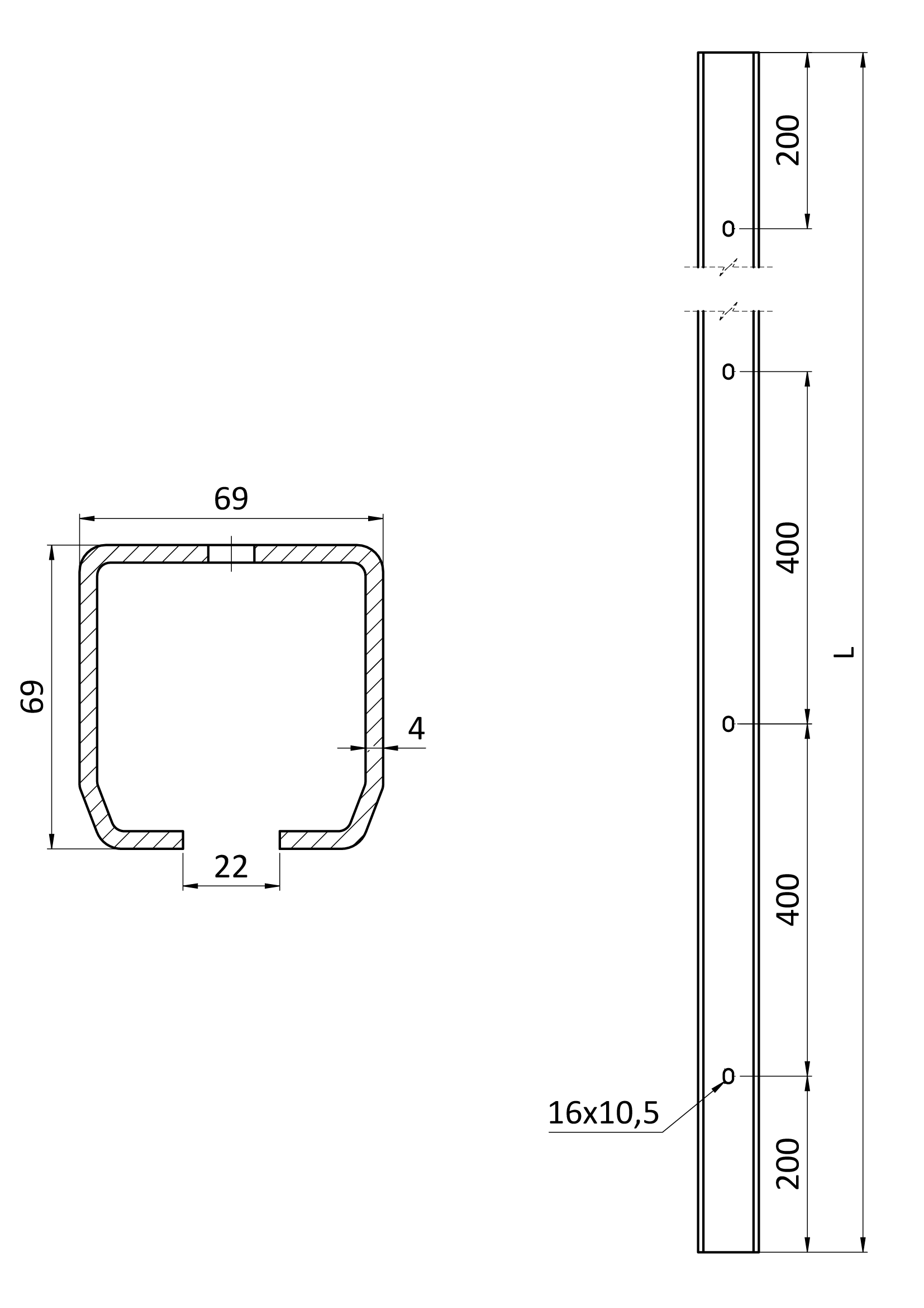 C profil PICOLLO 69 x 69 x 4 x 4000mm s otvory, pozinkovaný