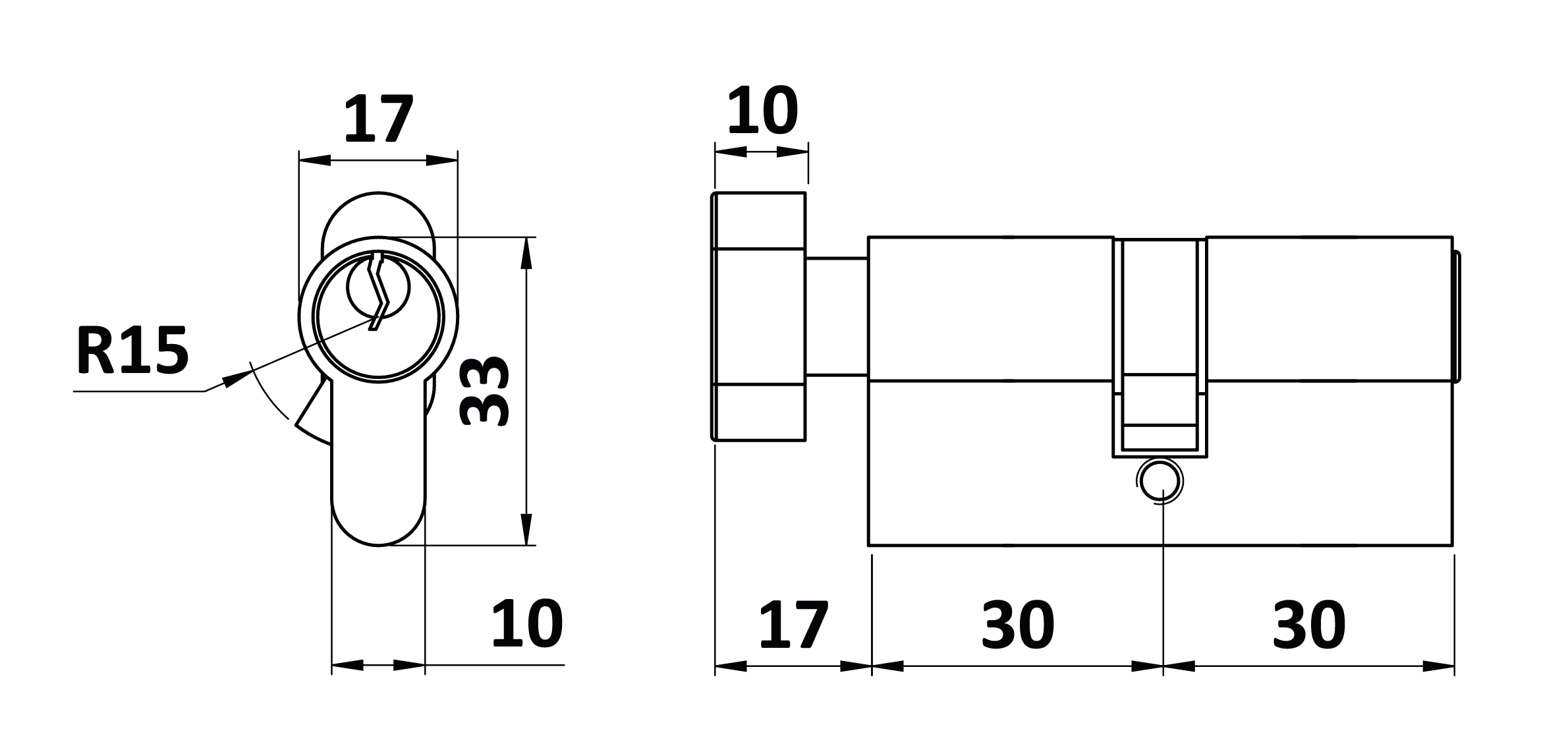Cylindrická vložka EURO 30/30mm s kulkou, niklová, 3 klíče, šroub M5x65mm