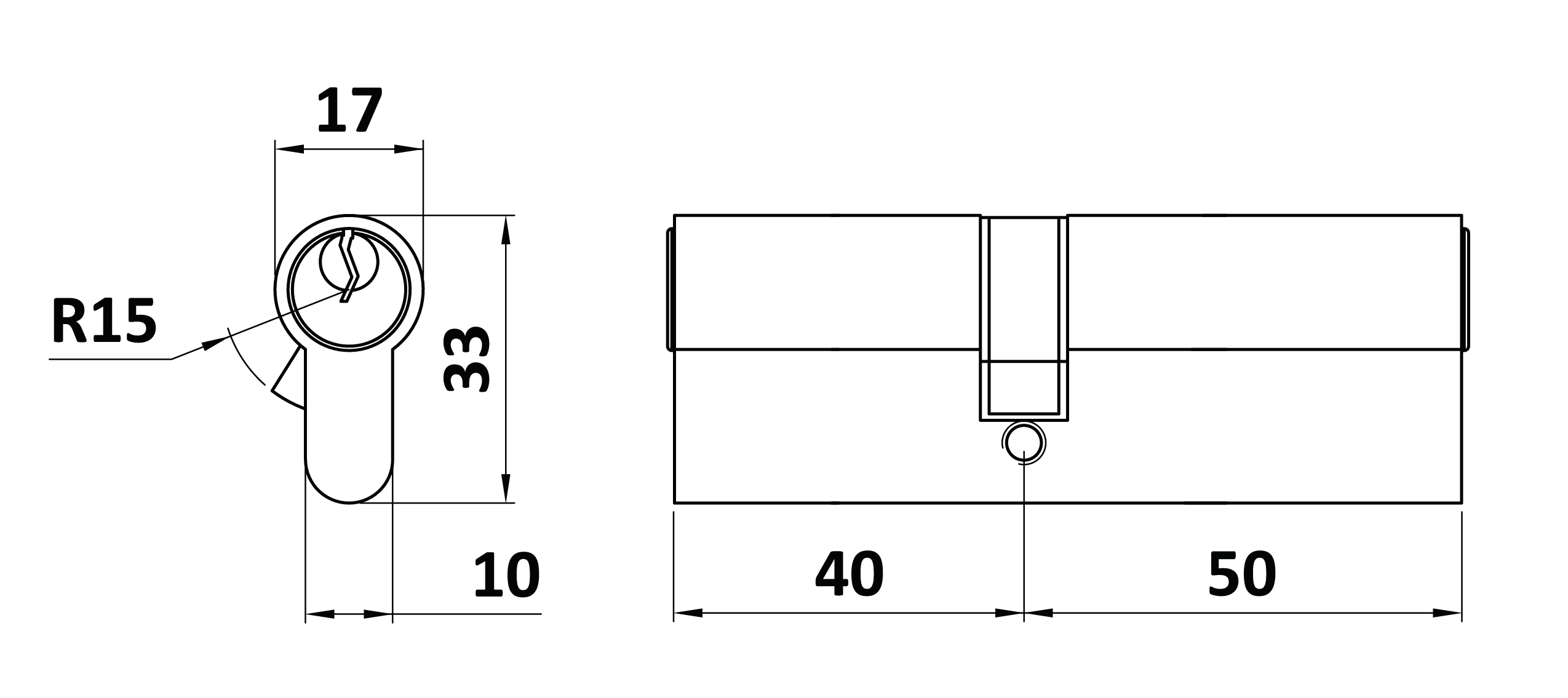 Cylindrická vložka EURO 40/50mm, niklová, 3 klíče, šroub M5x65mm