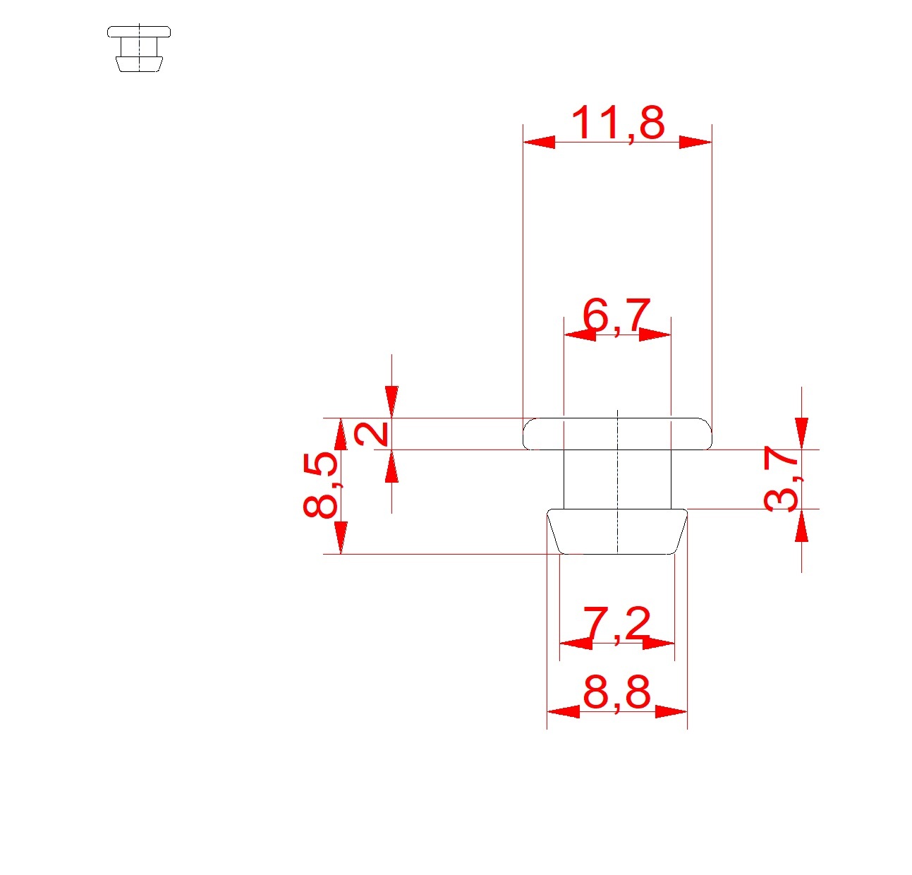 Doraz gumový průměr 11 mm, H-9 mm, pro díru 6 mm