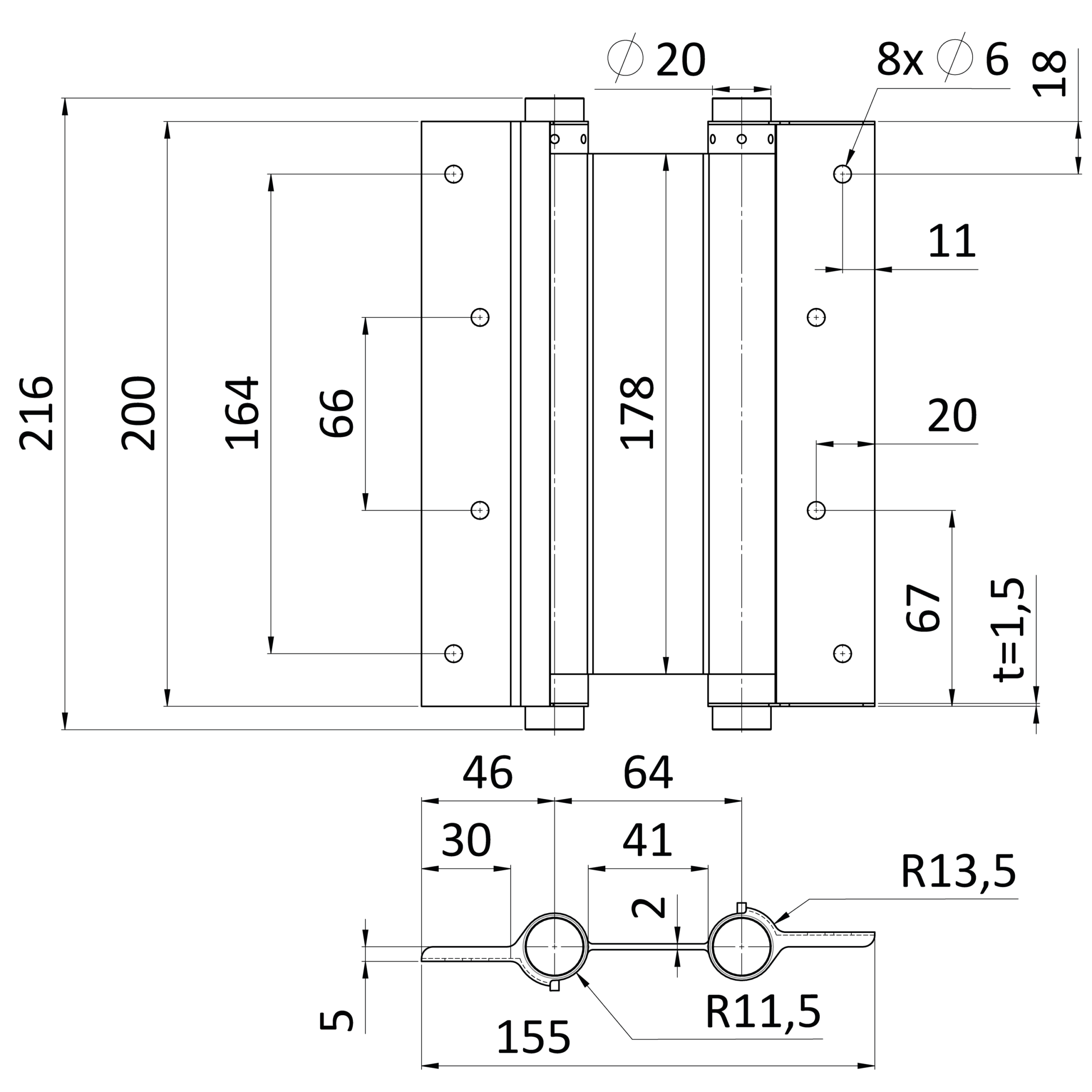 DVOJČINNÝ pánt pre krídlové dvere - samozatvárací, H - 200mm, nerezový, cena za PÁR