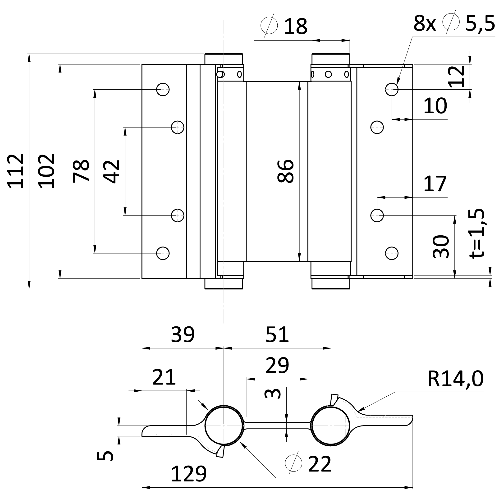 Dvojčinný samozavírací pant pro křídlové dveře, nerez