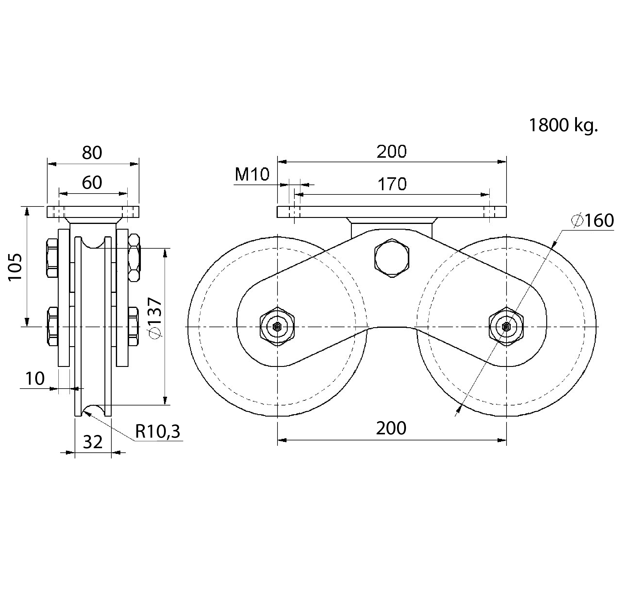 Koliesko od popredného talianského výrobcu Combi Arialdo. Povrchová úprava- pozink. Použitie pre posuvné brány. Väčšia zaťažiteľnosť s dvomi kolieskami na konzole.