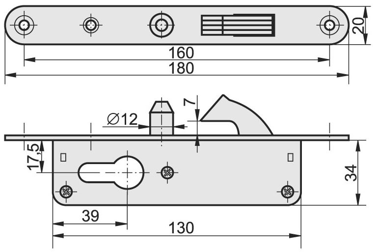 Hákový zámek na posuvnou bránu 35 mm, bez otvoru na kliku