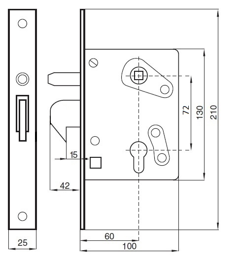 Hákový zámek na posuvnou bránu, rozteč 72 mm