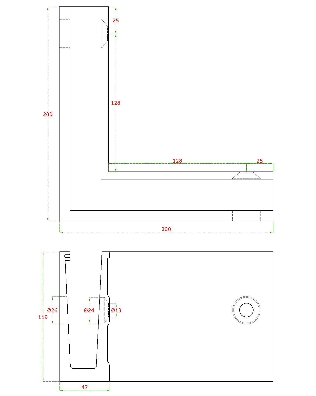Hliníková rohová spojka s bočním kotvením pro profil AL-L131-2.5 a AL-L131-5