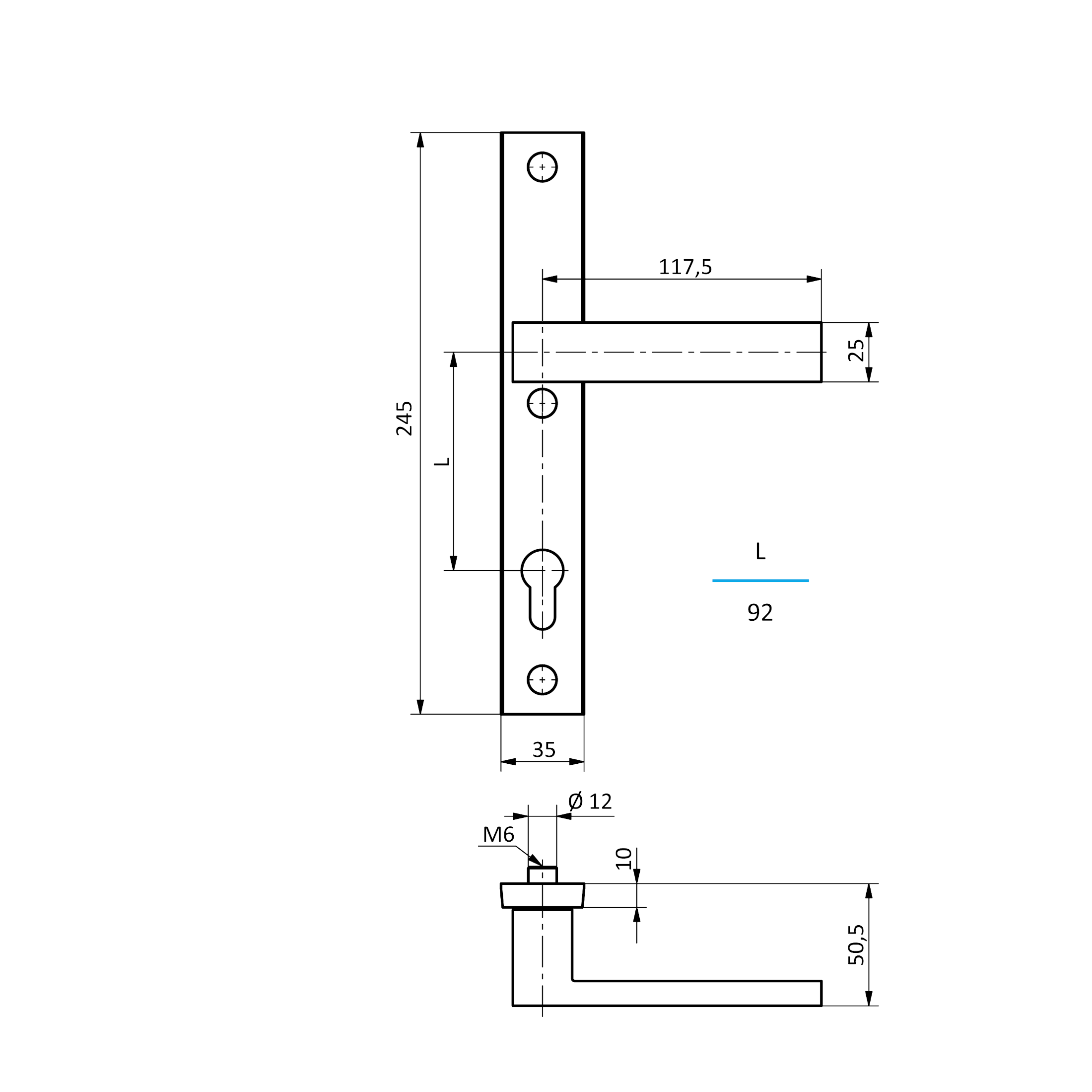 Kompletní sada hliníkového kování ve štítovém provedení, určená pro interiérové i exteriérové dveře, brány a branky. Sada obsahuje dvě oboustranně použitelné, pohyblivé kliky na společném štítu, což umožňuje pohodlné otevírání z obou stran. Štítové provedení elegantně zakrývá zadlabací zámek a montážní otvory, čímž vytváří čistý a ucelený vzhled.