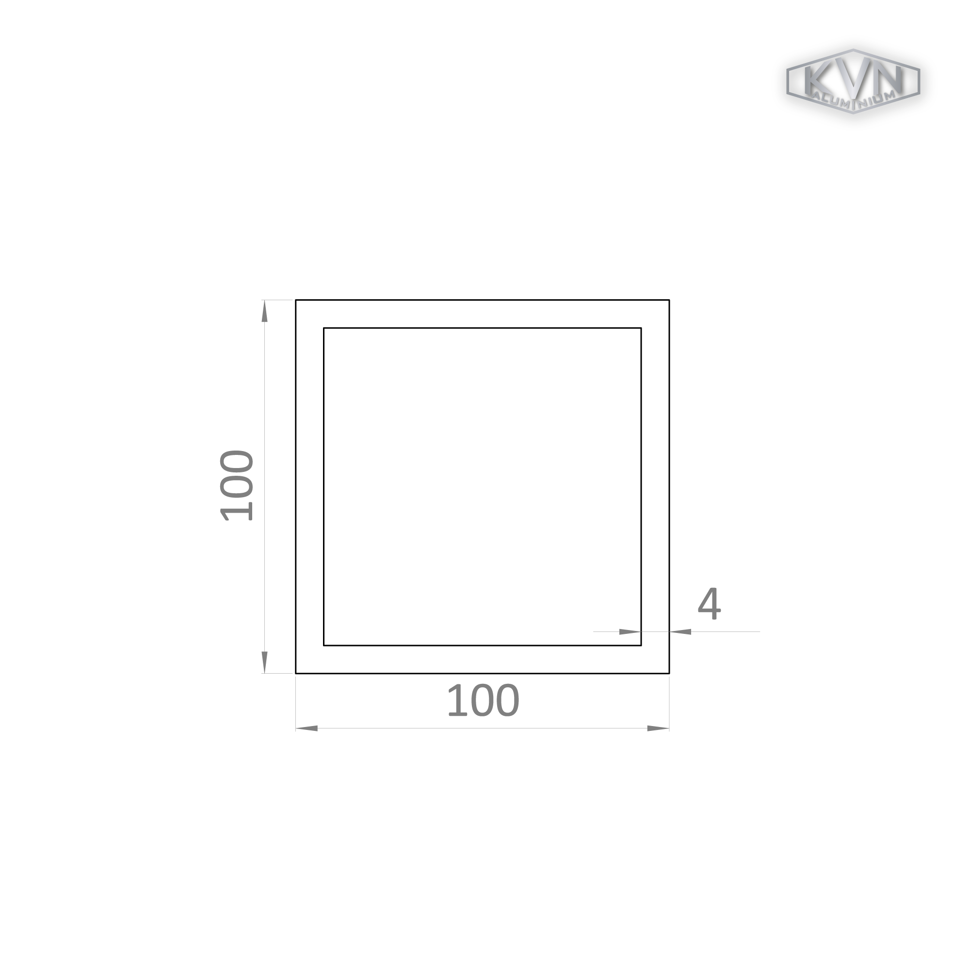 Jekl 100x100x4 mm, délka 6000 mm, materiál EN AW-6060 T66, přírodní hliník bez povrchové úpravy, cena za kus