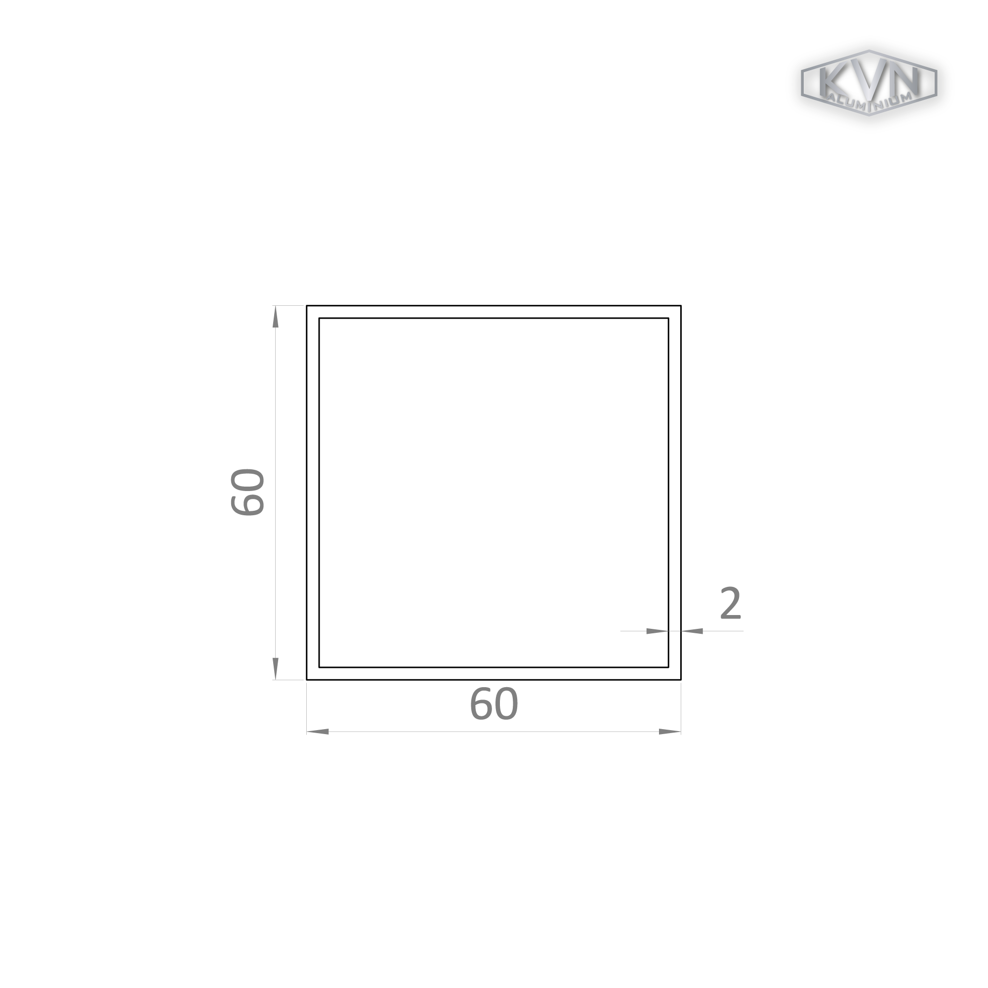 Hliníkový jekl 60x60x2 mm, délka 6000 mm, materiál EN AW-6060 T66, přírodní hliník bez povrchové úpravy, cena za kus