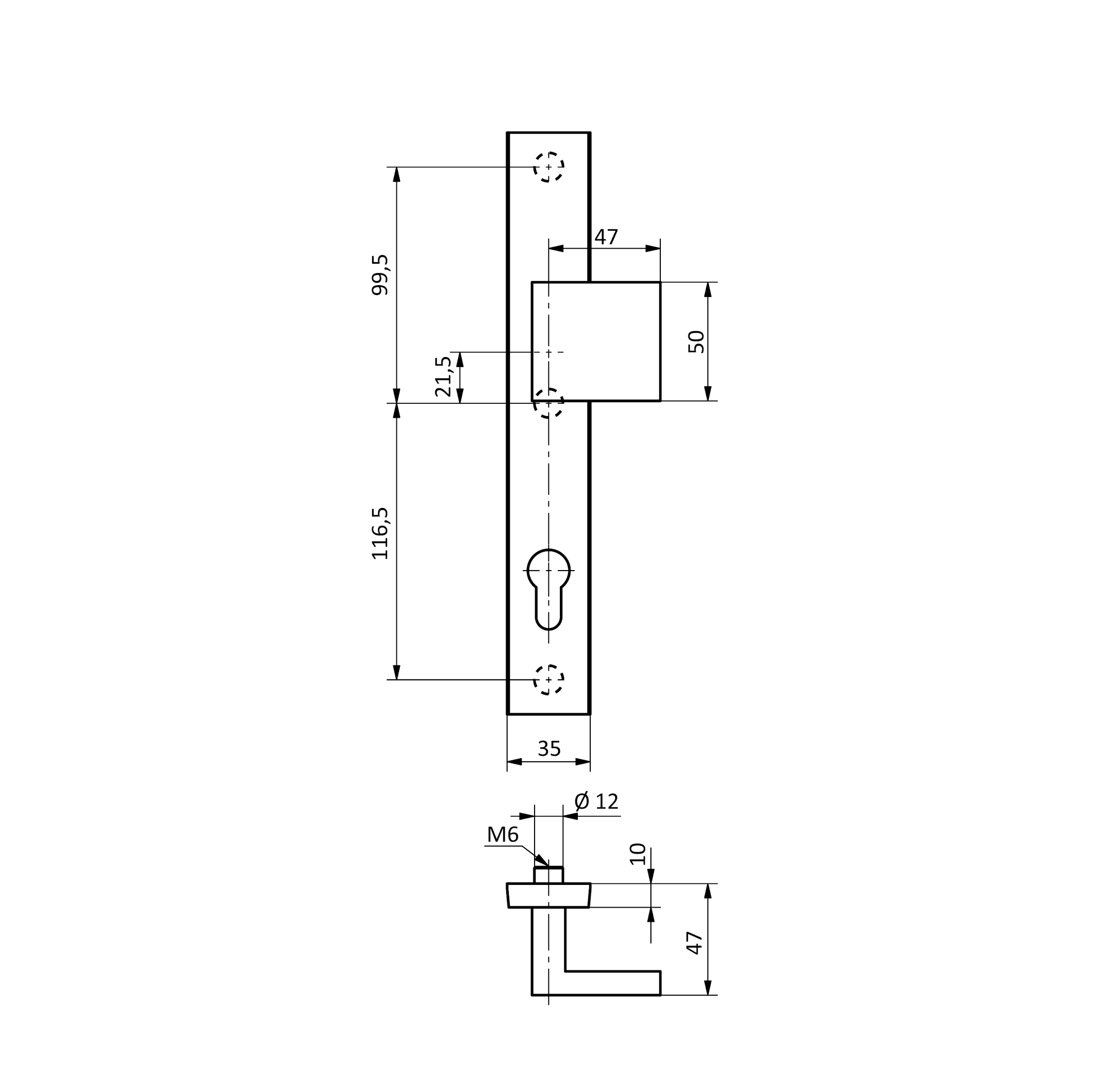 Kompletní sada hliníkového kování ve štítovém provedení, určená pro vstupní dveře, brány a branky. Sada kombinuje pohyblivou kliku na vnitřní straně a pevnou kouli na vnější straně. Toto řešení zvyšuje bezpečnost, jelikož z vnější strany je k otevření dveří vždy nutné použít klíč. Štítové provedení elegantně zakrývá zadlabací zámek a montážní otvory, čímž vytváří čistý a ucelený vzhled.