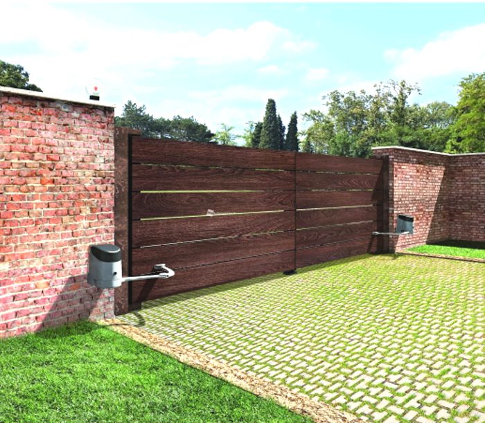 Sada pro křídlové brány s křídly do 2,4 m, i pro velké sloupy a lehké konstrukce.
