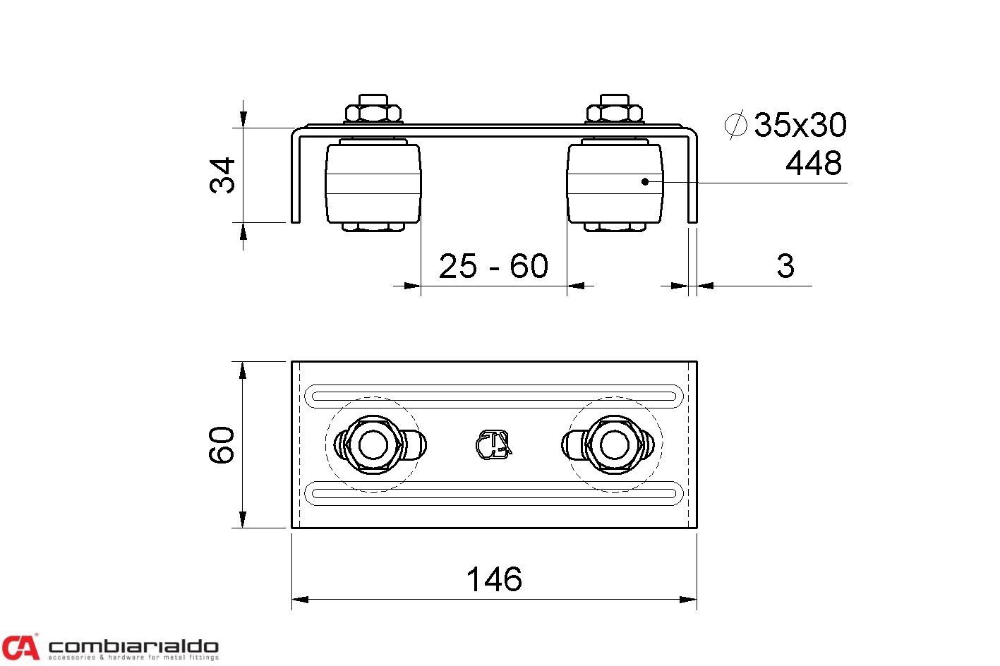 Horní vedení brány Combi Arialdo, 2 vodící nylonové kladky 35 x 30 mm