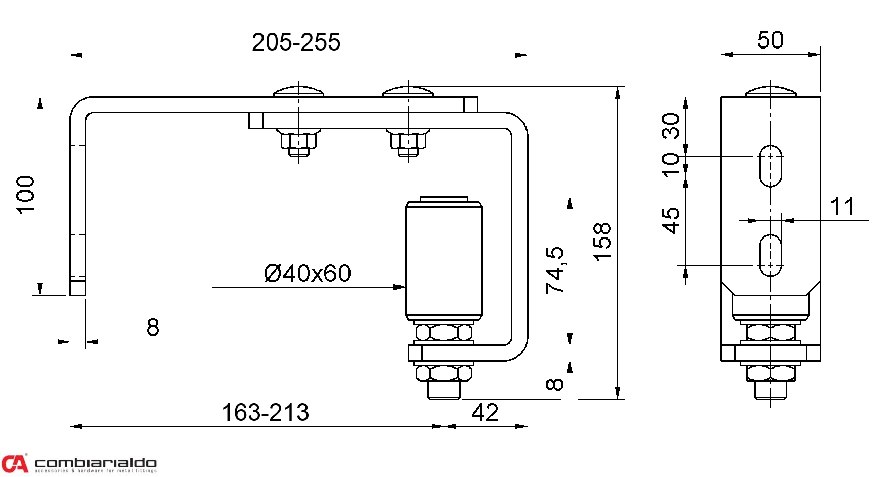 Horní vedení brány Combi Arialdo s nylonovou kladkou 40 x 60 mm