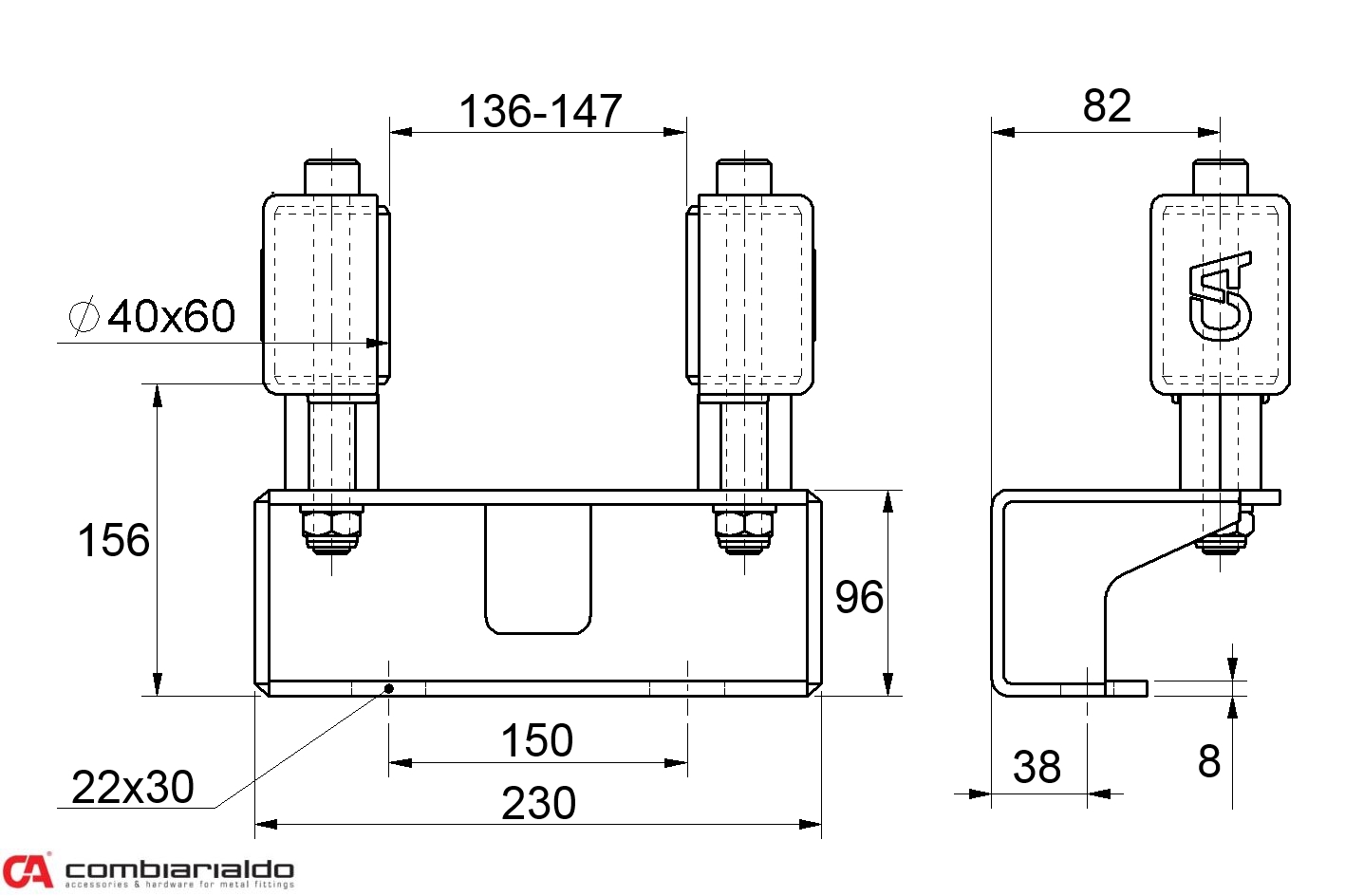 Horní vedení pro samonosný systém Combi Arialdo, 2 kladky s kryty