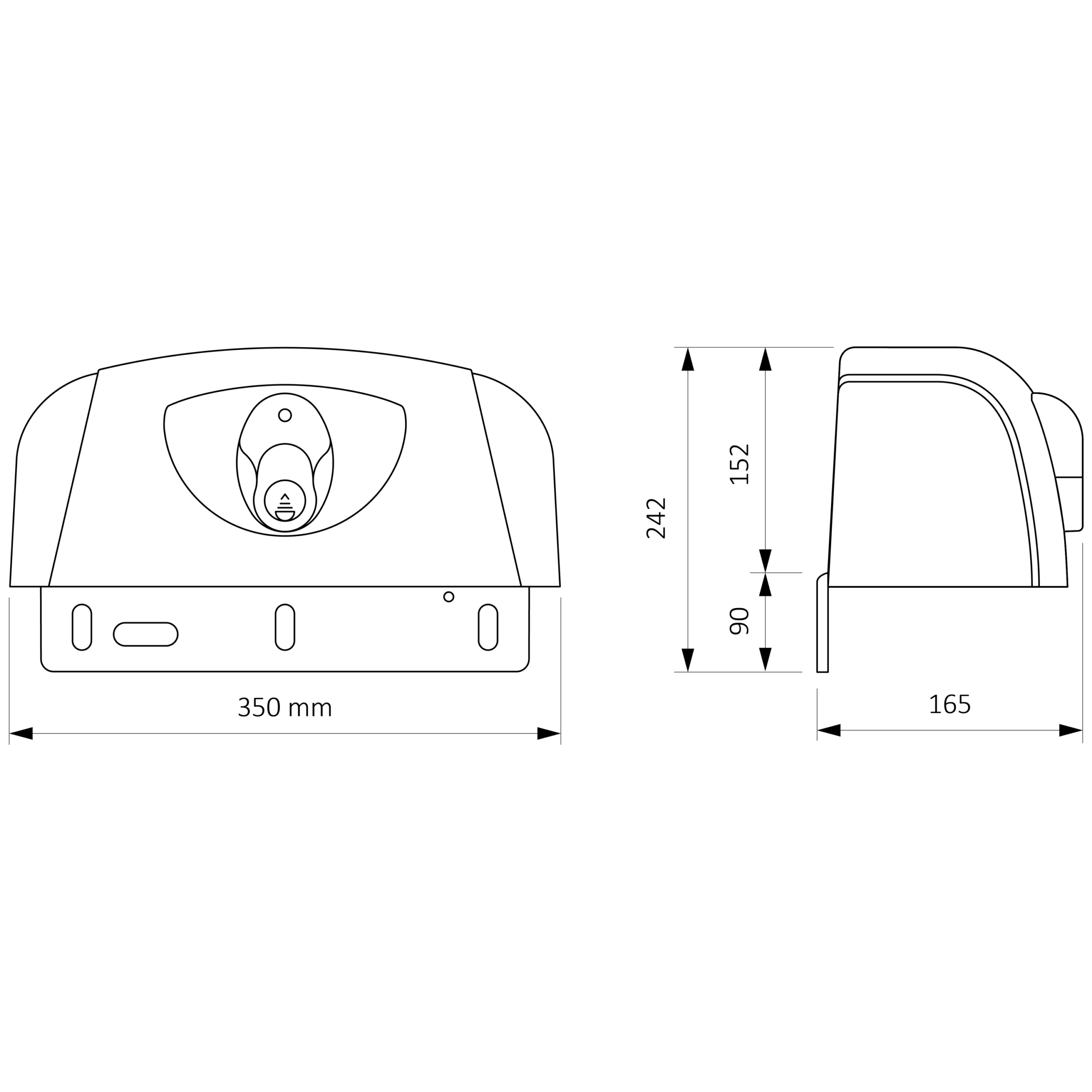 - Vestavěné koncové dorazy: Pohony se automaticky zastaví v koncové poloze, čím se prodlužuje jejich životnost a zabraňuje se poškození brány.