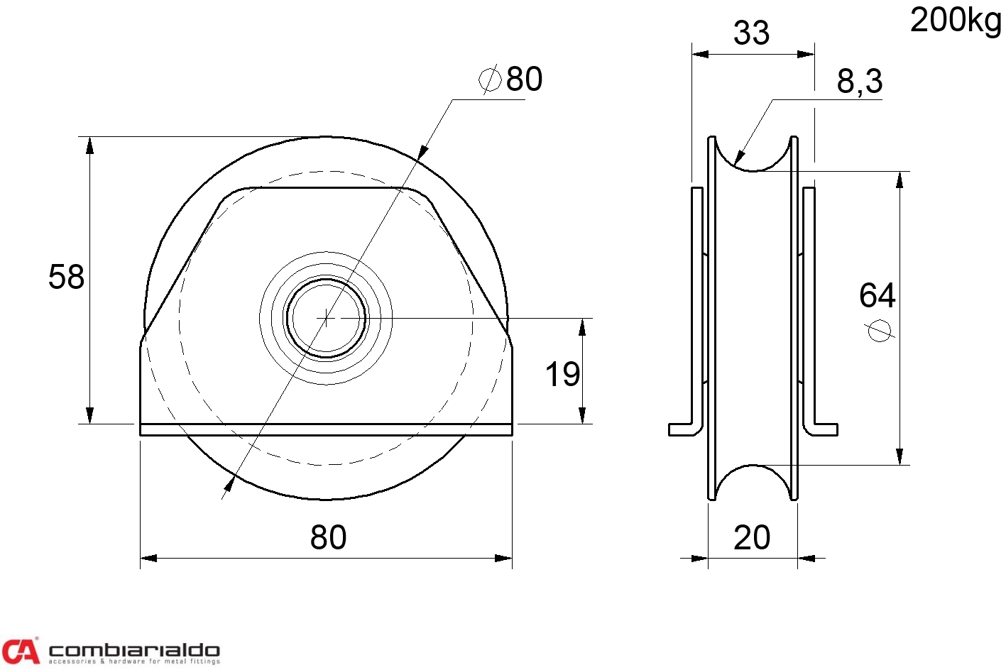 Kladka ø 80 mm na přivaření Combi Arialdo, C902/16 profil, nosnost 200 kg
