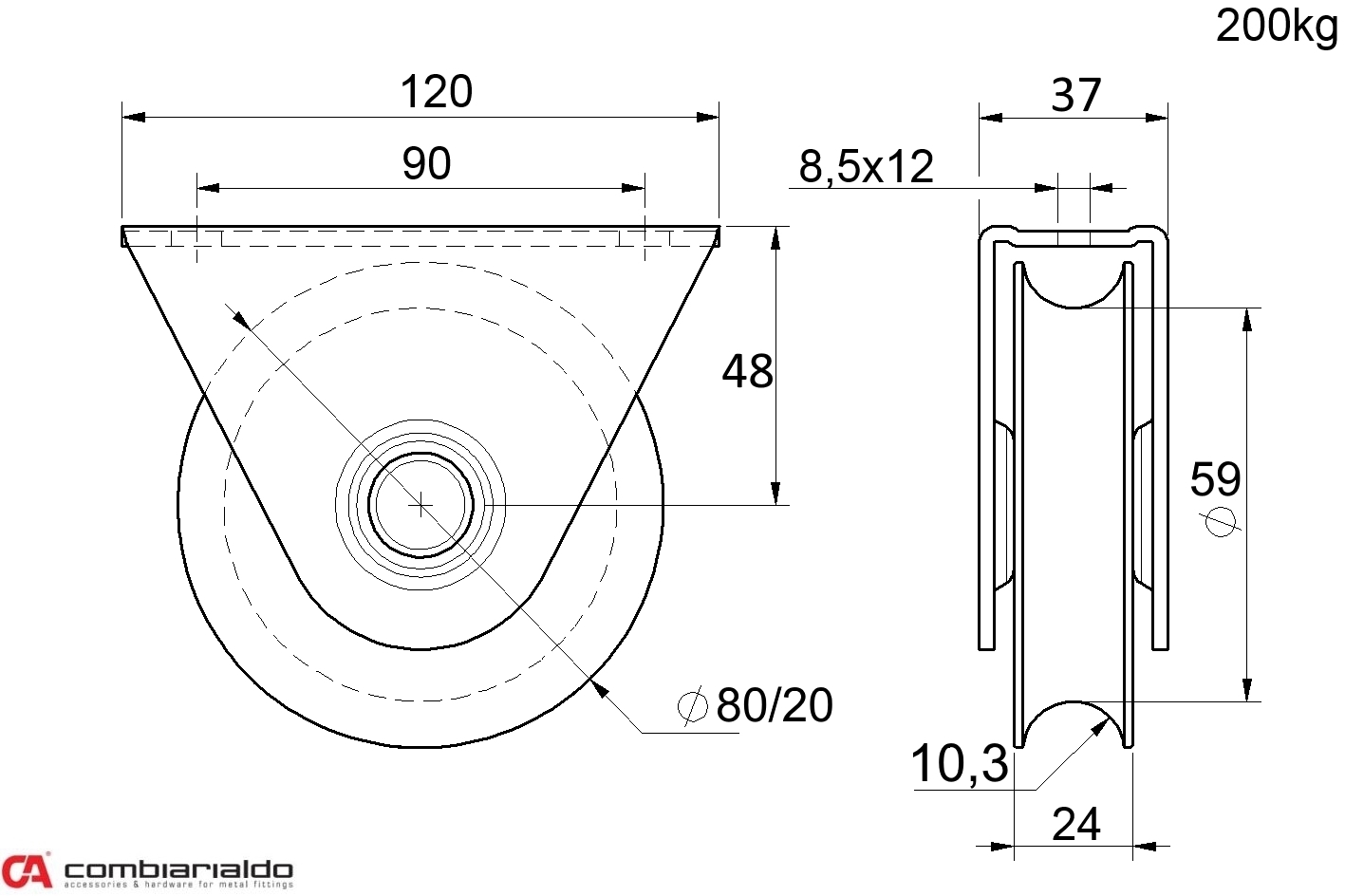 Koliesko od popredného talianského výrobcu Combi Arialdo. Povrchová úprava- pozink. Použitie pre posuvné brány.