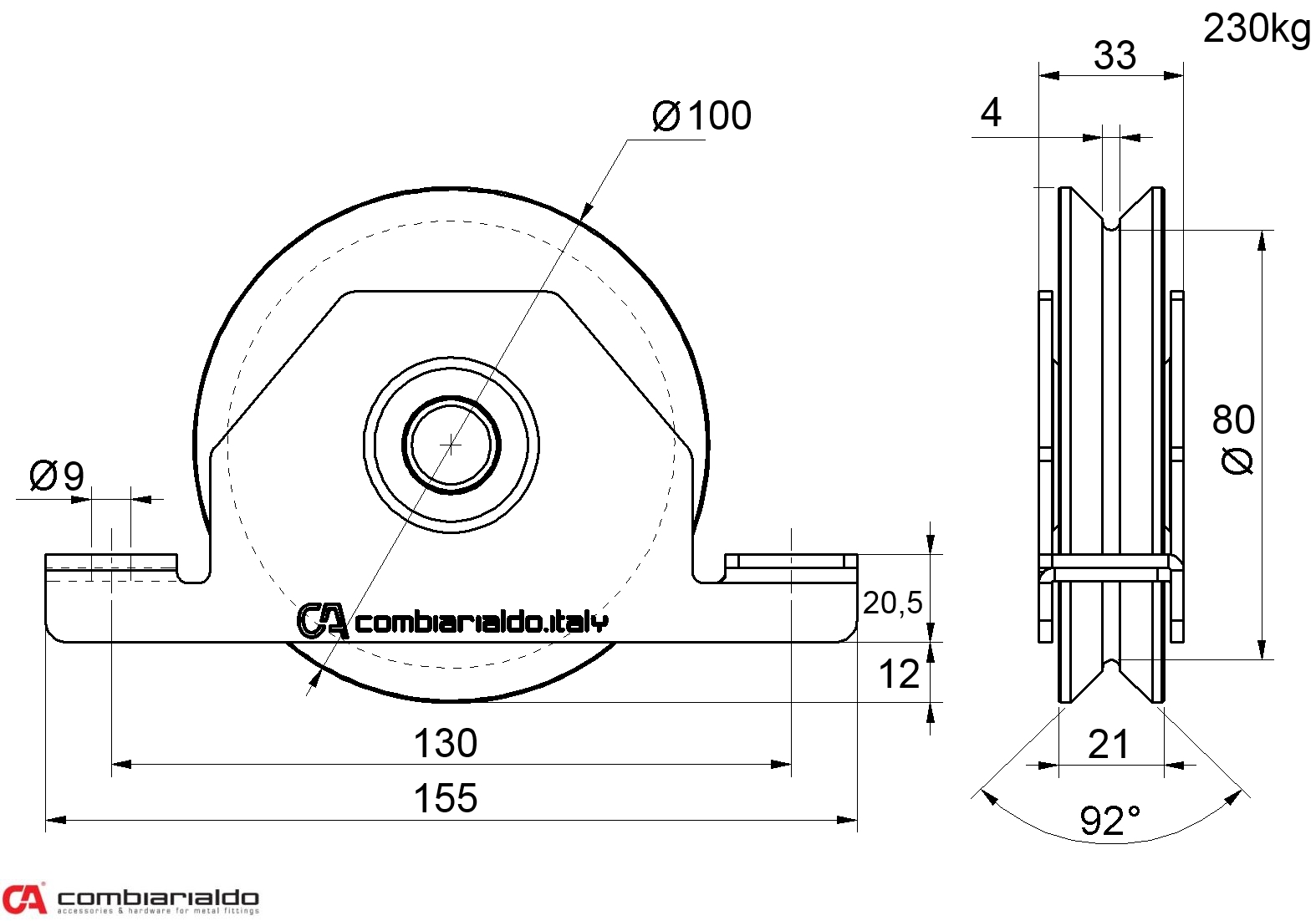 Koliesko od popredného talianského výrobcu Combi Arialdo. Povrchová úprava- pozink. Použitie pre posuvné brány.