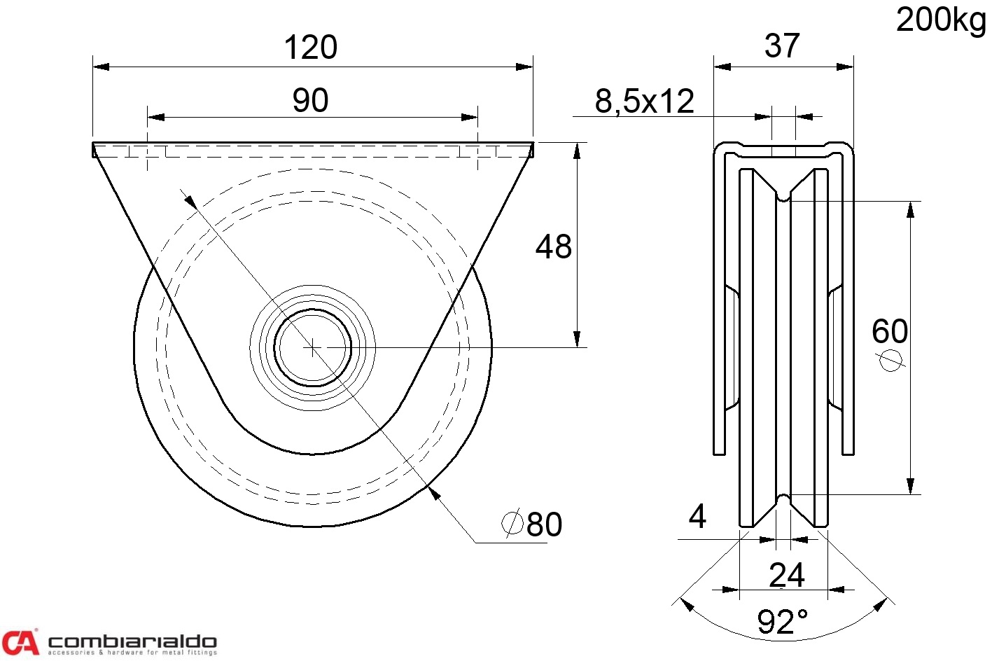 Koliesko od popredného talianského výrobcu Combi Arialdo. Povrchová úprava- pozink. Použitie pre posuvné brány.