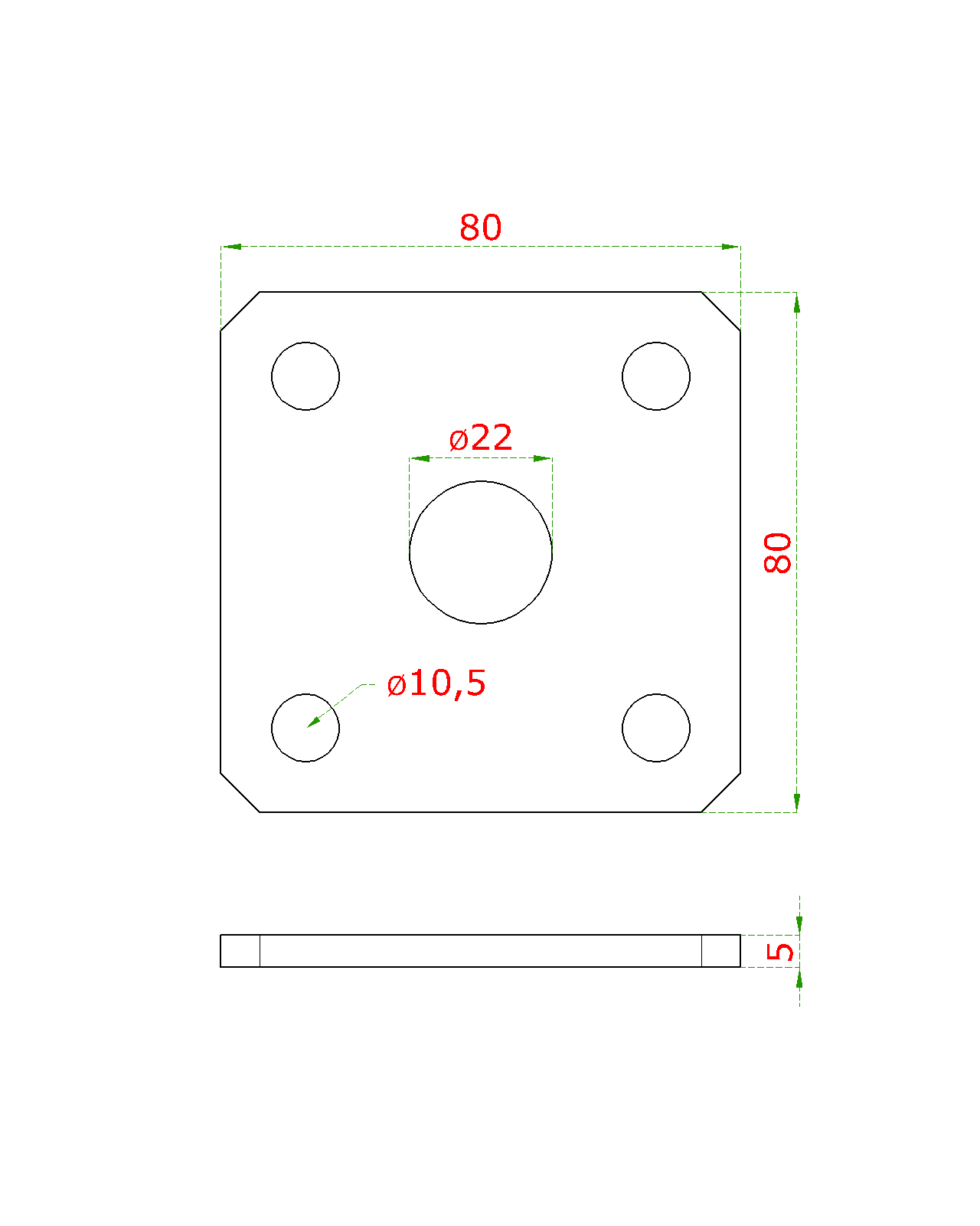 Kotevní deska navařovací k nastavitelným pantům (80x80x5 mm), otvor ø 22 mm, broušená nerez / AISI304