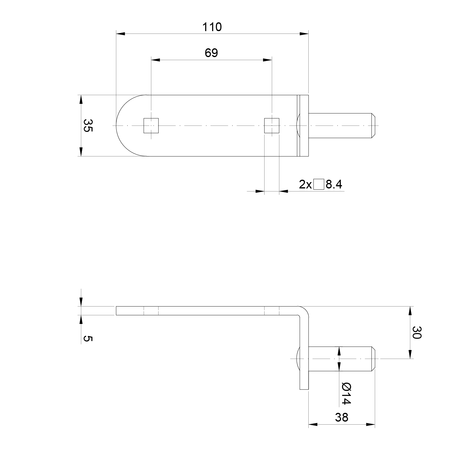 Kování 150 x 35 x 4 mm, ø14 mm, černá...