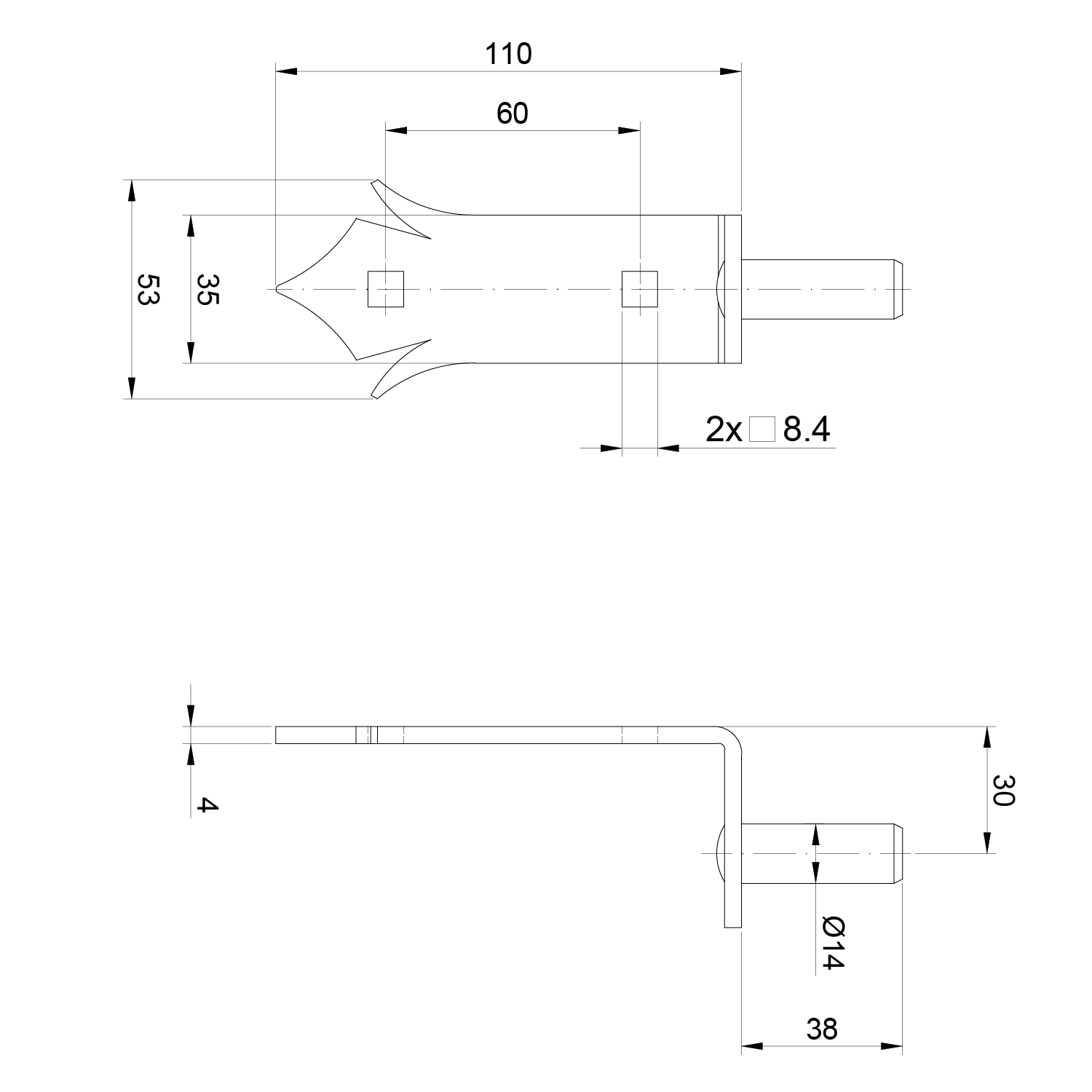 Kování ozdobné, 150 x 35 mm, ø14 mm, ...