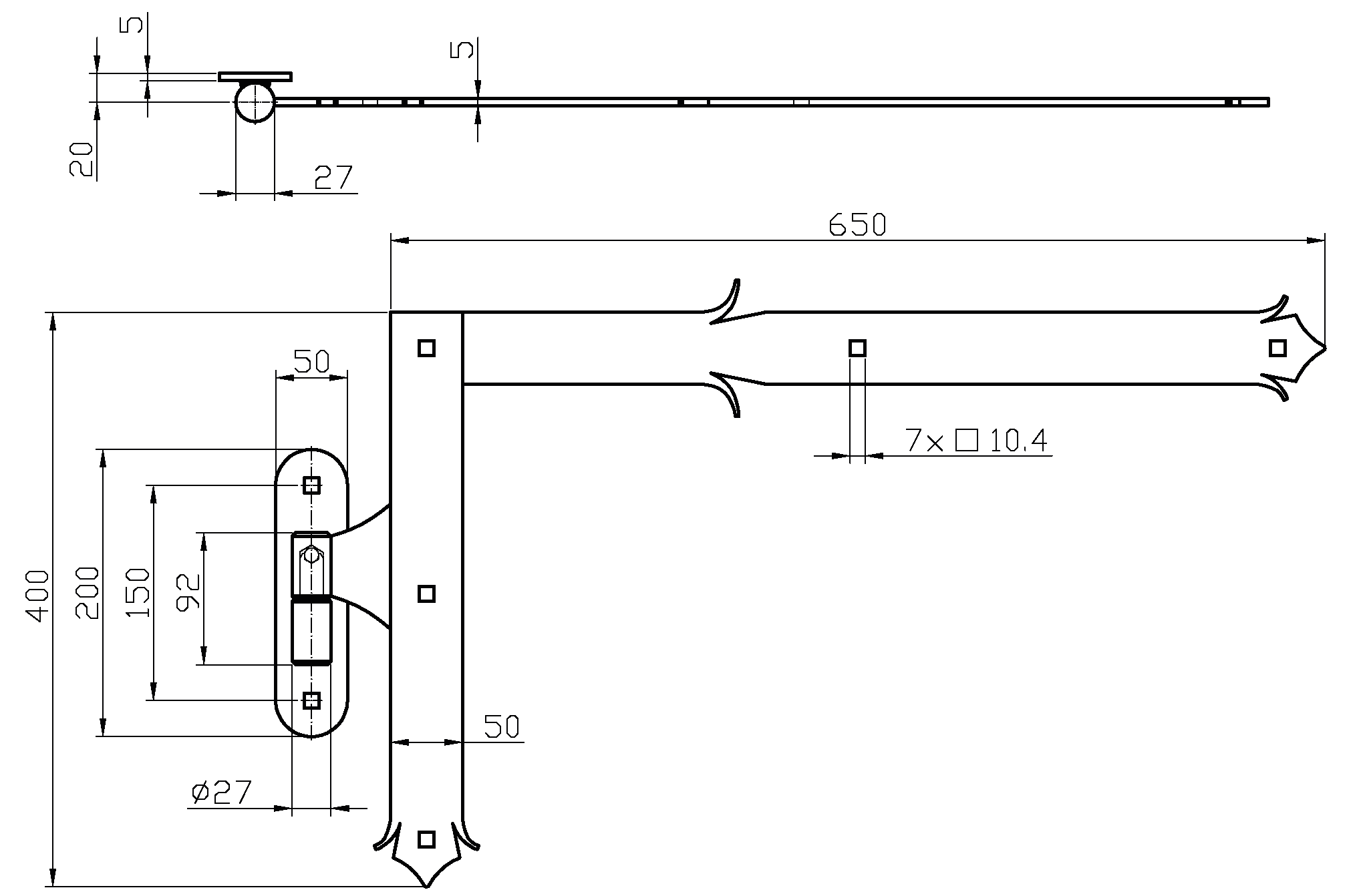 Kování ozdobné HORNÍ, 400 x 650 mm s čepem, profil 50 x 5 mm, černý