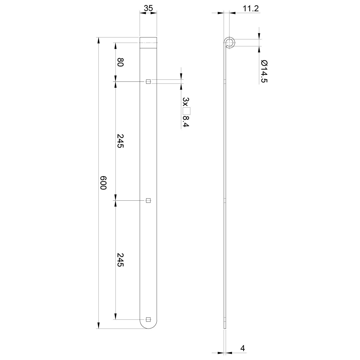 Kování pásové 600x35x4 mm, otvor pro čep ø14 mm, černá barva