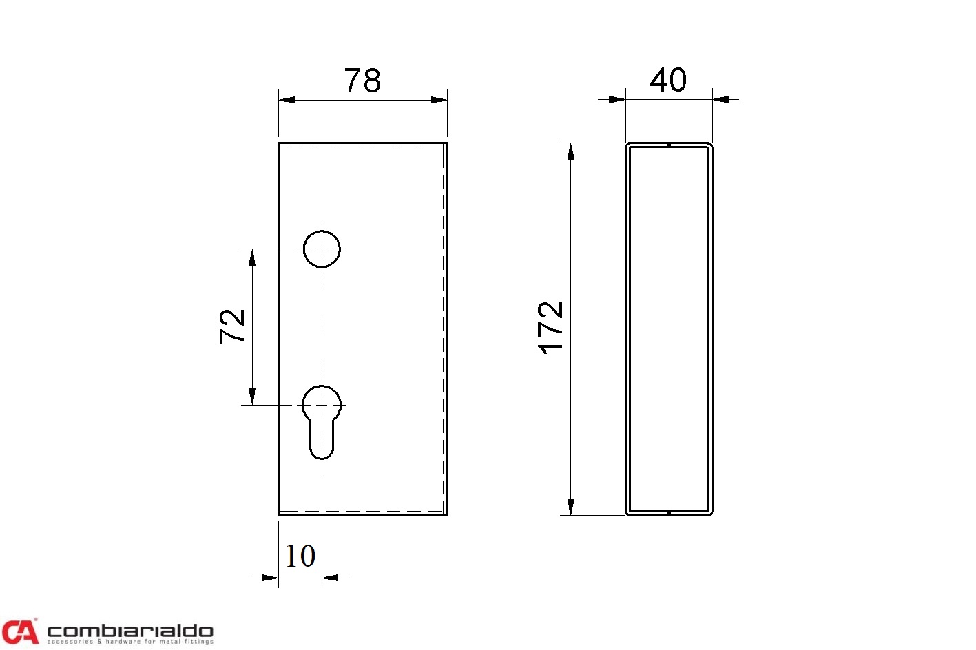 Kryt zámku od popredného talianského výrobcu Combi Arialdo. Povrchová úprava pozink. Použitie pre posuvné brány. Kryt sa navára na jockel 50mm - kombinácia so zámkom C351 a C353Počet kusů v balení - 6.