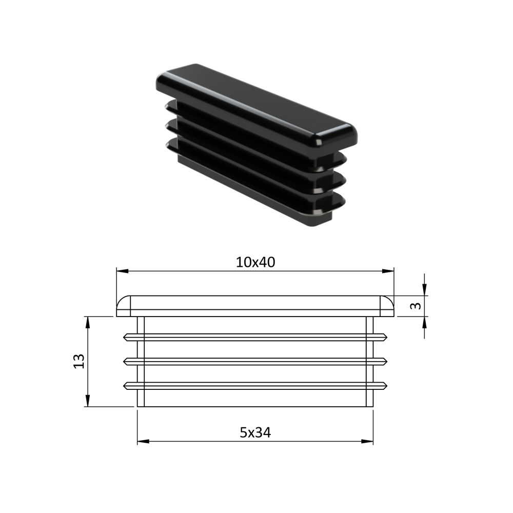 Krytka plastová 10 x 40 mm, černá
