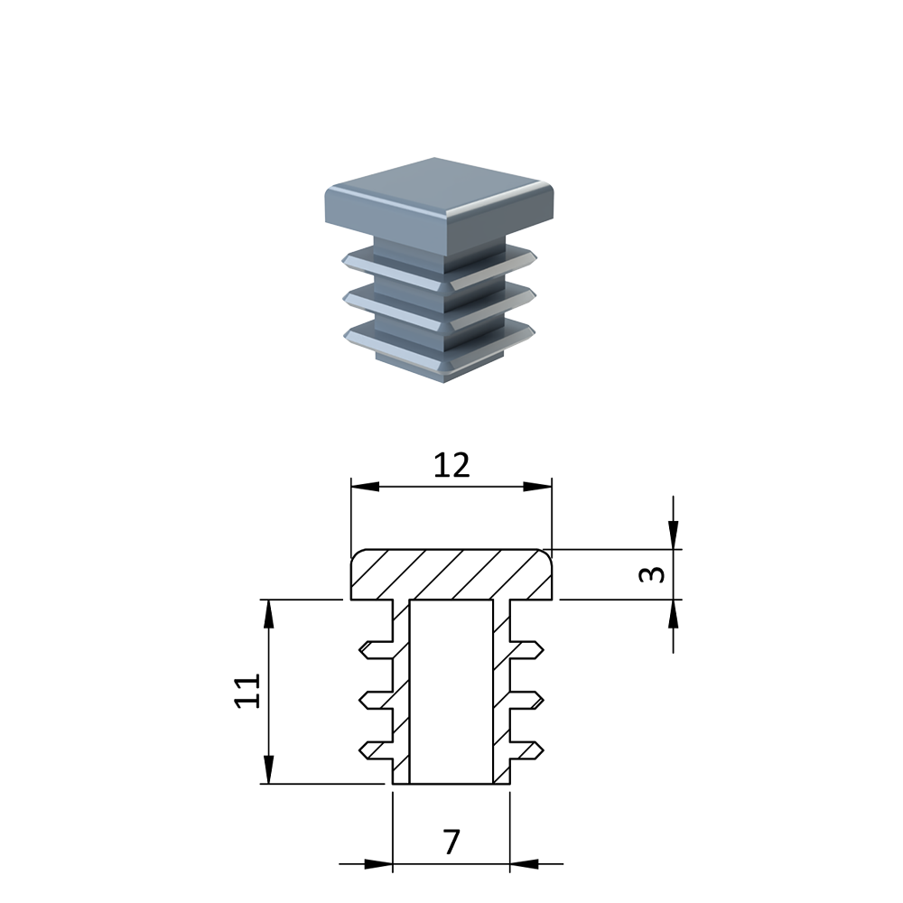 Krytka plastová 12 x 12 mm, šedá