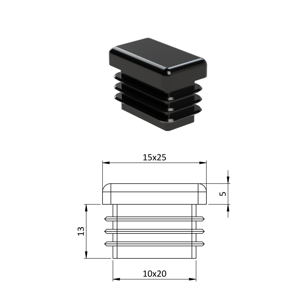 Krytka plastová 15 x 25 mm, černá