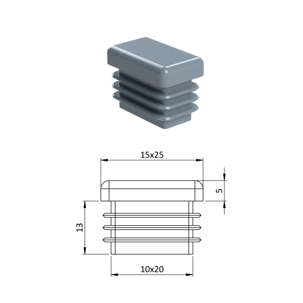 Krytka plastová 15 x 25 mm, šedá