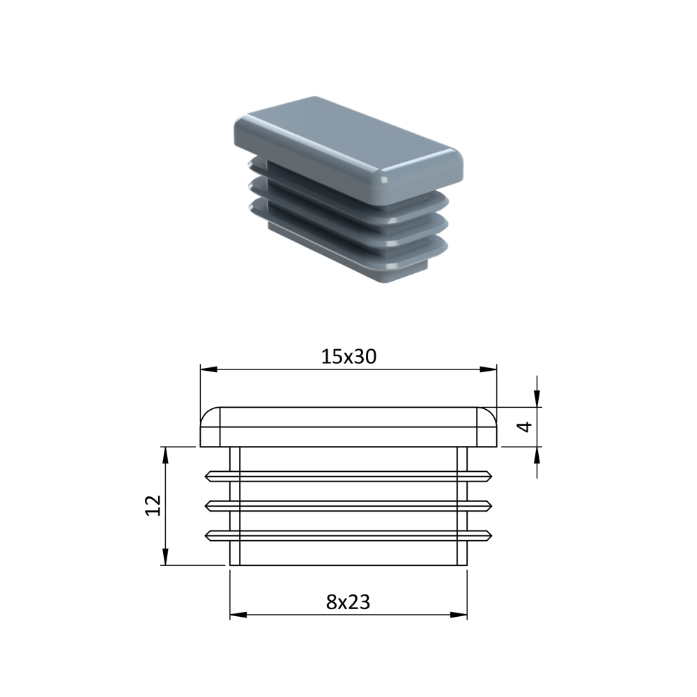 Krytka plastová 15 x 30 mm, šedá