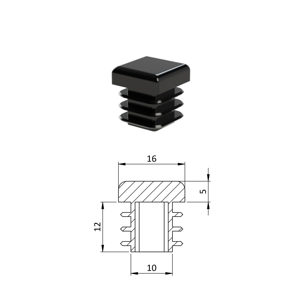 Krytka plastová 16 x 16 mm, černá