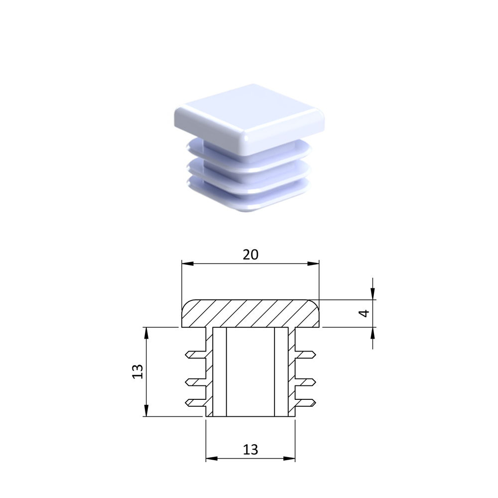 Krytka plastová 20 x 20 mm, bílá