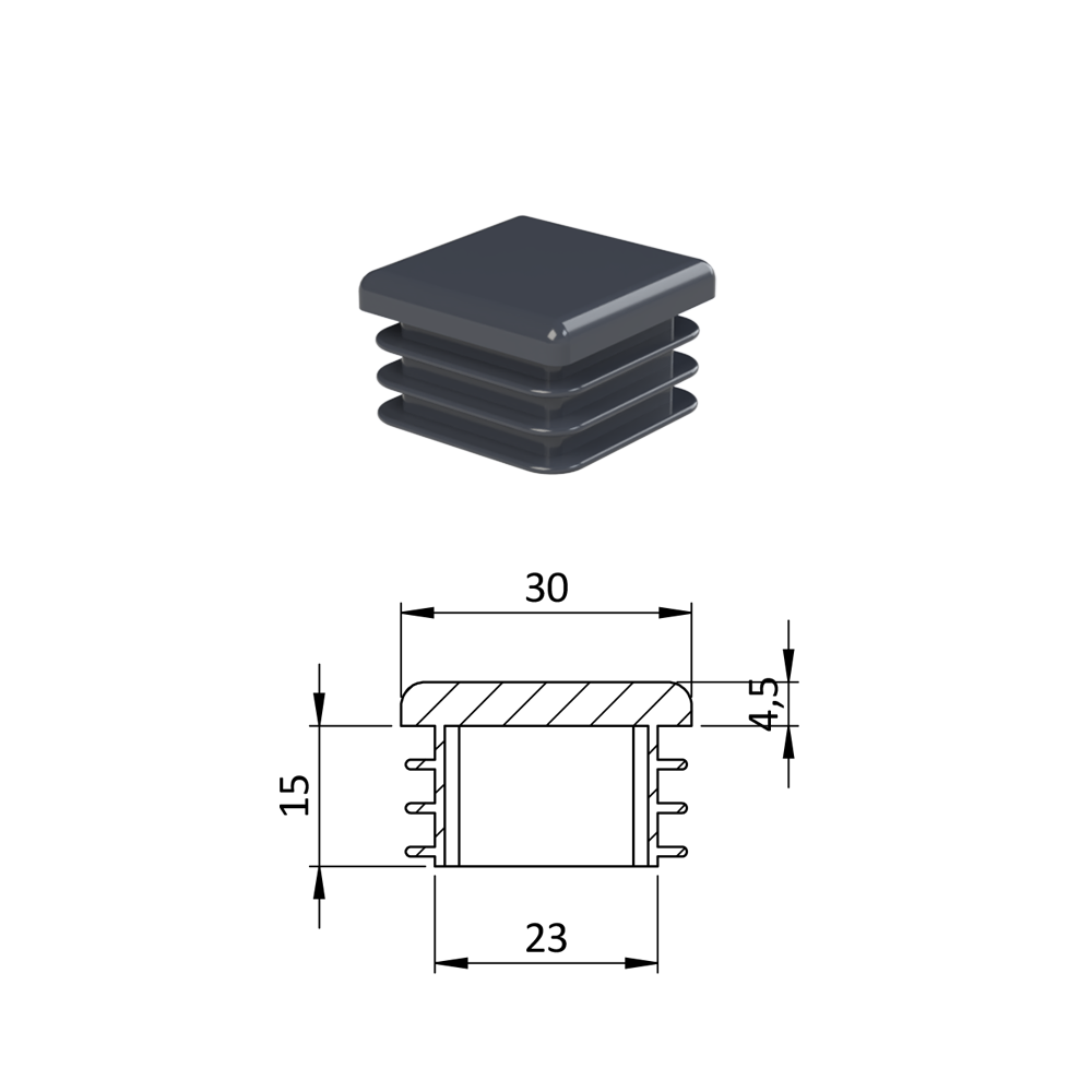 Krytka plastová 30 x 30 mm, antracit
