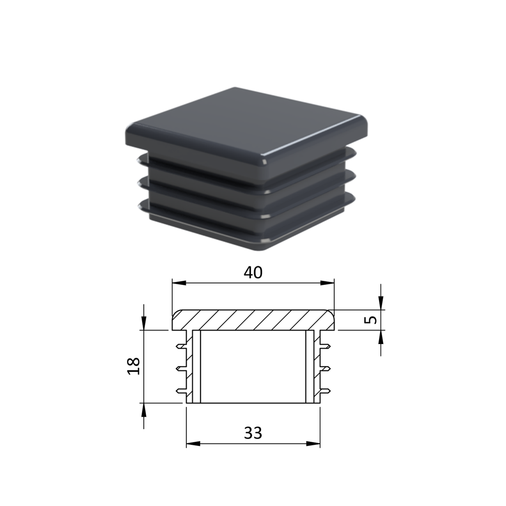 Krytka plastová 40 x 40 mm, antracit